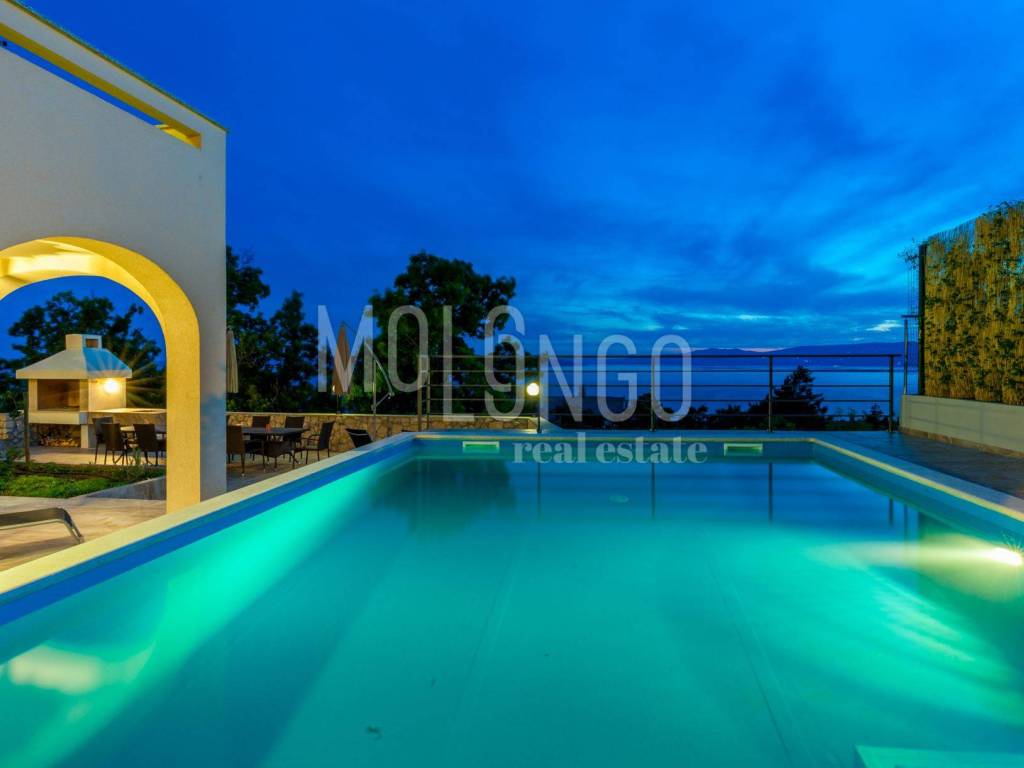 For rent is a new detached house with a pool and stunning panoramic sea views. It consists of a living room, kitchen with dining area, five bedrooms, three bathrooms, three toilets, a billiards room, recreation area, and a terrace. The property features a pool with a sunbathing area and a barbecue. The house has central gas heating installed and air conditioning units. It comes fully equipped with all necessary household appliances and furniture. Long-term rental. For any further information and viewing arrangements, please contact the agent.