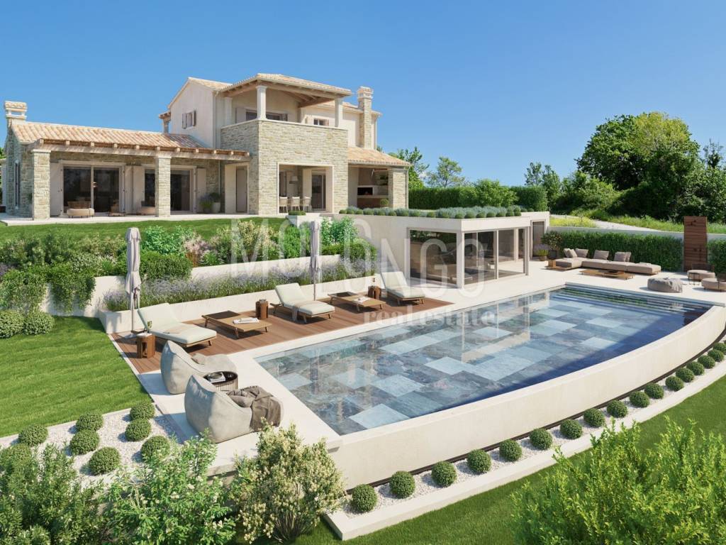 Located in a quiet location, just a few minutes' drive from the picturesque Grožnjan, this magnificent villa offers a spectacular panoramic view of the sea. The villa is spread over 1736 m² of land, while the villa itself has an impressive 402 m² spread over three floors.