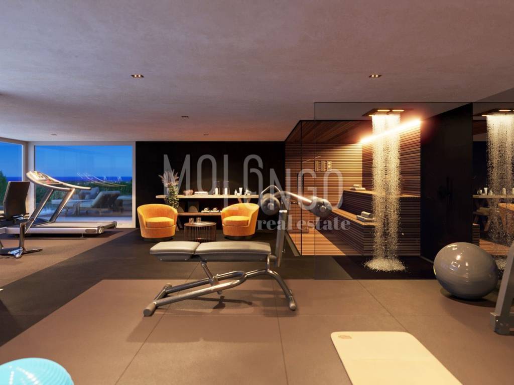 - Ground floor: Large living room with open-plan kitchen and dining room, one bedroom, bathroom, storage room, utility room and guest toilet. The living room leads to a spacious covered terrace that leads to the garden with a beautiful view of the sea and greenery.