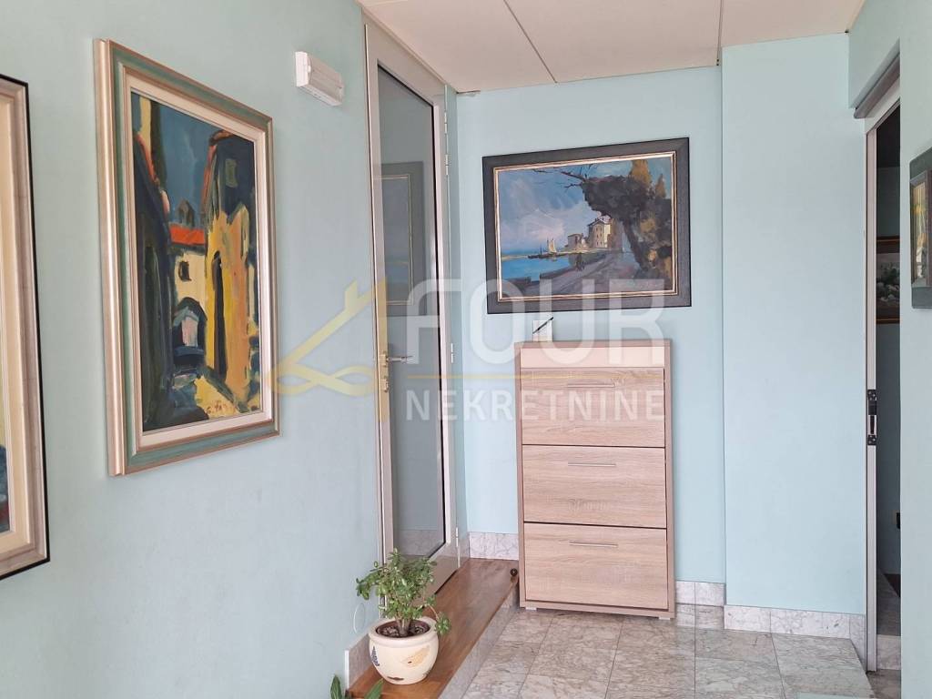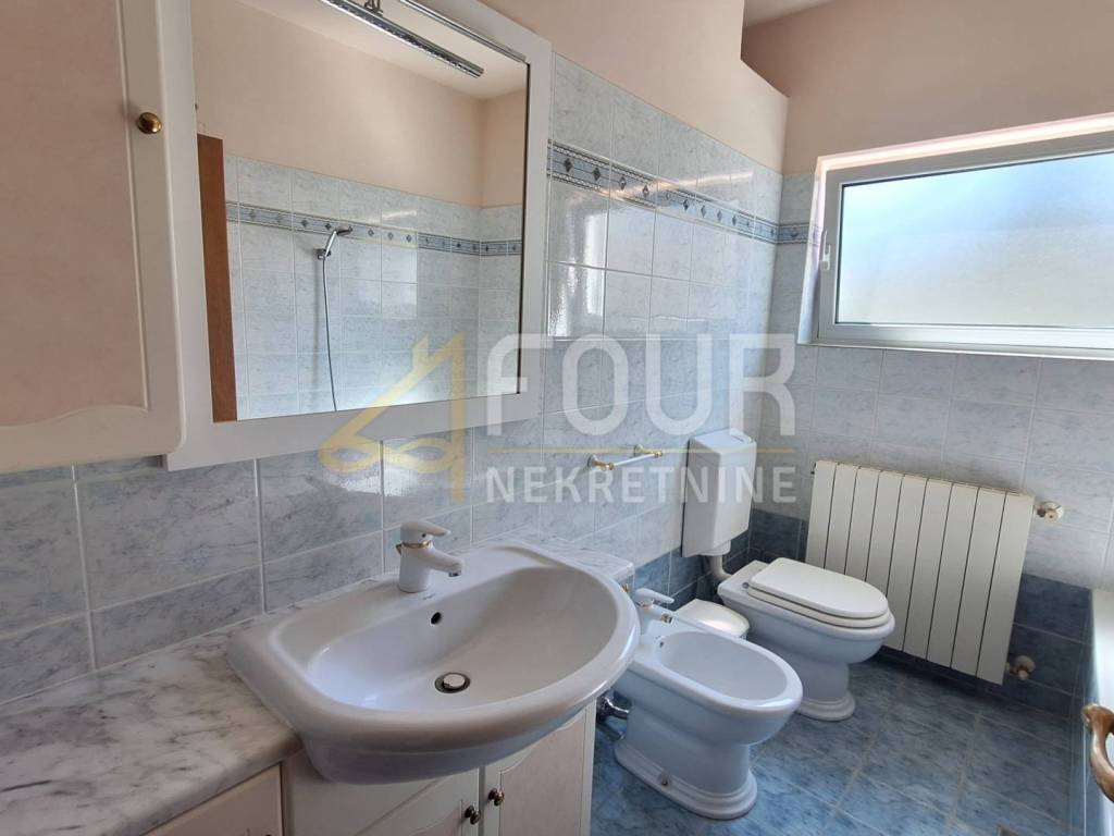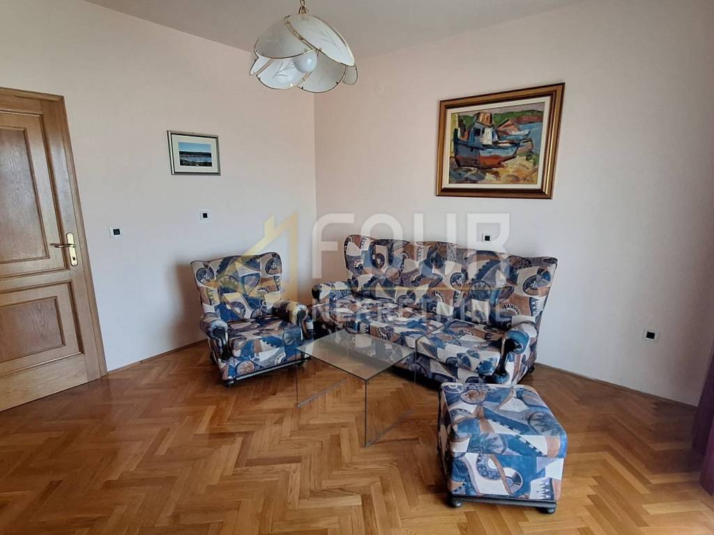 Apartment for long-term rent in Poljane. It is located on the first floor of the house with a separate entrance and offers a beautiful view of the sea. Furnished, tidy, with a new kitchen equipped with a dishwasher, microwave, refrigerator and a new oven with a hob. The kitchen leads to a closed loggia that can be opened if necessary. The bedroom is equipped with a large wardrobe, and the exit to the spacious loggia allows you to enjoy the view of Kvarner. It has two bathrooms and air conditioning for heating and cooling. There is a barbecue available for use in the garden, and there is also one outdoor parking space. Ideal for a couple. Pets are not allowed.