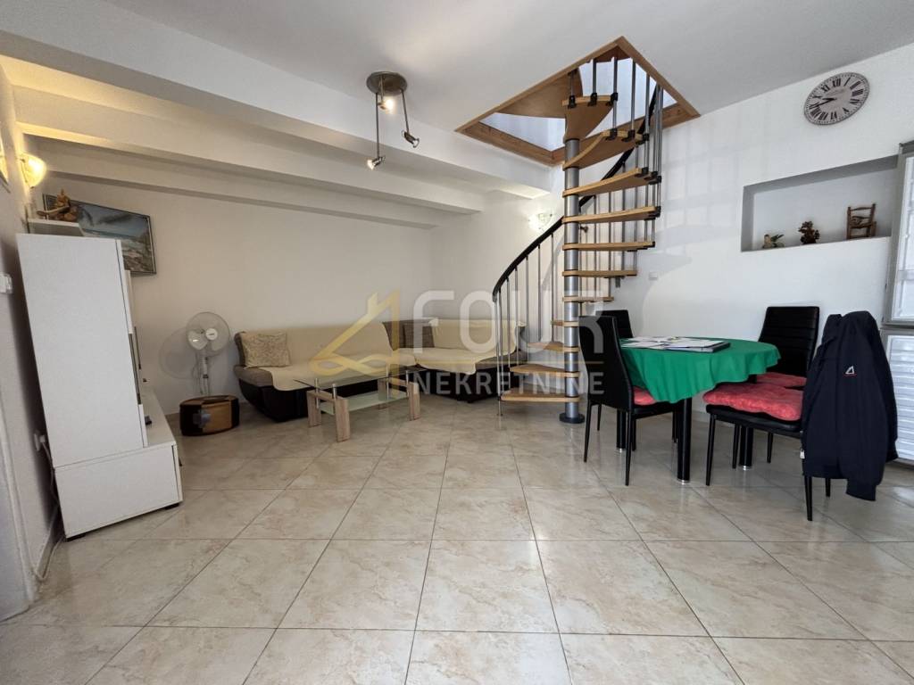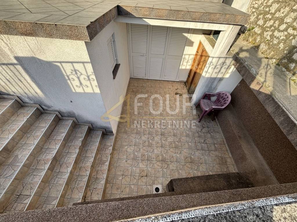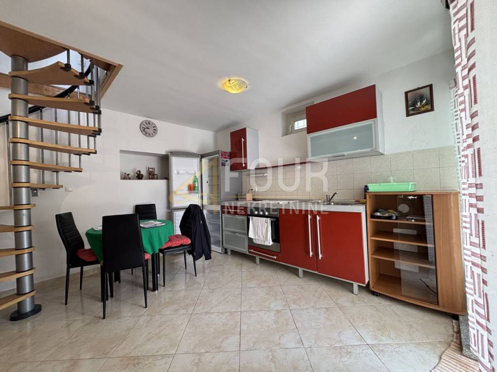 In a quiet location in Jadranovo, a two-story apartment in a semi-detached house is for sale, located on a plot of 114 m2. This well-maintained property consists of a basement, ground floor and attic. In the basement there is a living room with a dining room and kitchen, a bathroom and an exit to the terrace. The ground floor includes a bedroom with an exit to a second terrace, and in the attic there is a possibility of arranging additional space with a potential sea view.