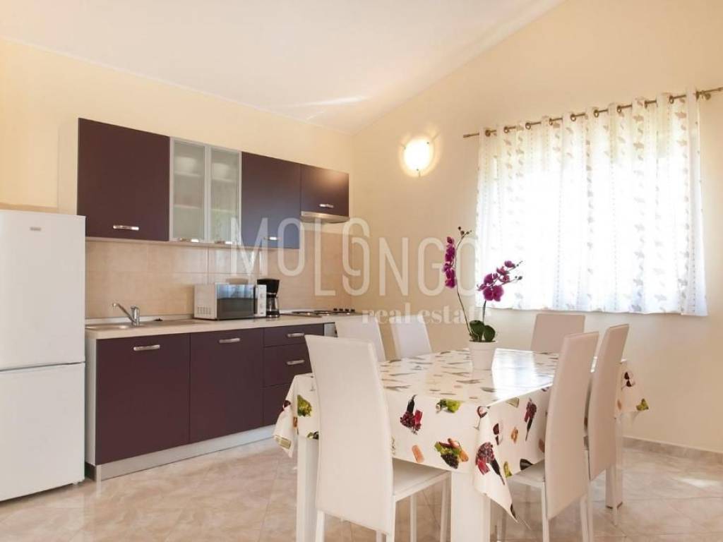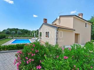 In the vicinity of Sv. Lovreč, we offer this beautiful, detached house with a swimming pool. You can experience all its comfort in its 136 m2 of living space, which extends across the ground floor and first floor. The ground floor contains an open space area with a fully equipped kitchen with dining area and a large living room. On the ground floor there is also one bedroom with a bathroom. Internal stairs lead to the first floor, where there are two more comfortable and beautifully decorated bedrooms that share one bathroom and a large terrace for enjoying the fresh air.