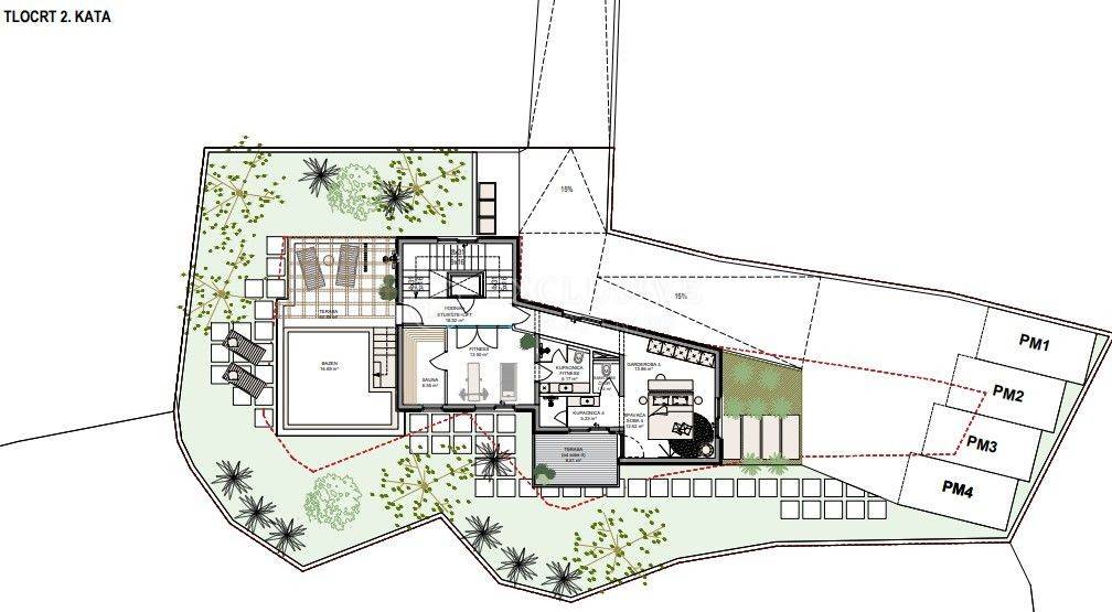 Vila (podrum, prizemlje, 1.kat, 2.kat) s jednim 4 S+DB stanom, 2 bazena, saunom, fitnesom i liftom - ukupne brutto građevinske površine 365,73 m2)