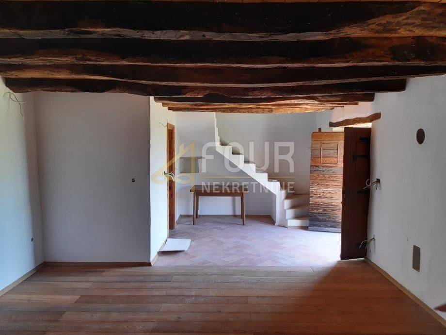 We offer a renovated stone house in a rustic style located on top of a hill with an open view of the beautiful landscape and the sea. The house consists of two floors - ground floor and first floor, and additionally has a gallery. On the ground floor there is a kitchen with a living room and a bathroom, and the first floor is an open space that can be divided. The house also has a garden of 339m2. The distance from the sea is 10 km, from Slovenia 13 km, and from Italy 35 km.