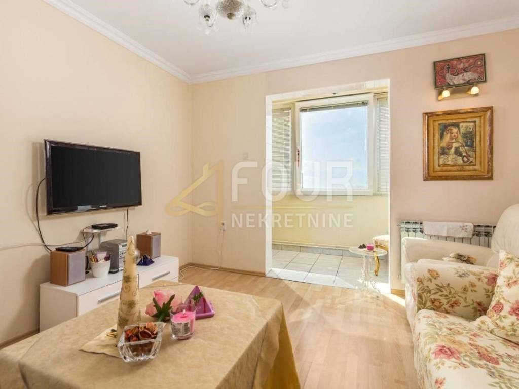 The apartment consists of a bedroom, a kitchen with a dining room, a living room, a bathroom and a closed loggia.