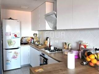 The apartment offers a beautiful view of the sea, and consists of three bedrooms, a spacious living room, a kitchen with a dining room, two bathrooms, a loggia and a balcony.