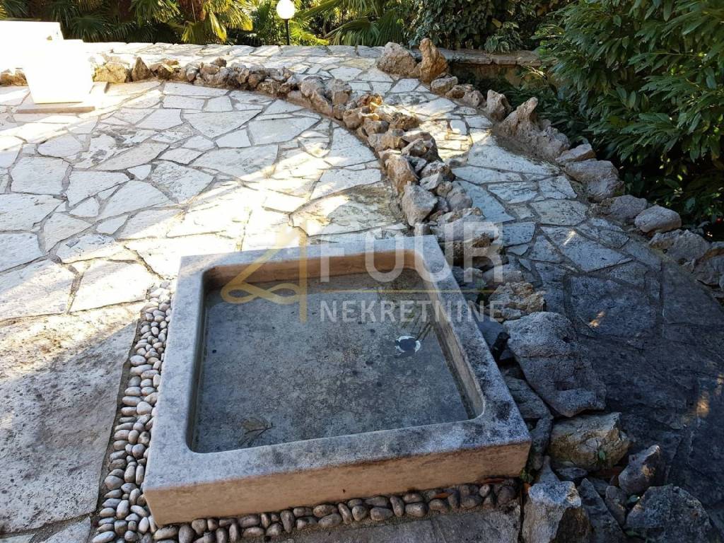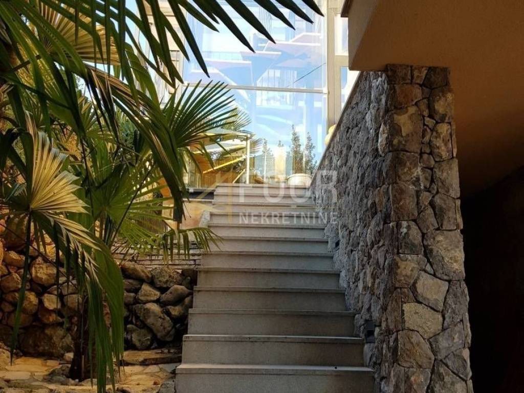 The property is divided into three floors, behind the villa there is a parking space for three vehicles, while in front of the house there is an open terrace with a swimming pool. There is also a house with a barbecue. As you go further, you descend into a beautiful park with lots of palm trees, Mediterranean plants and other greenery. The sea view is open from the ground floor and from all parts of the terrace.