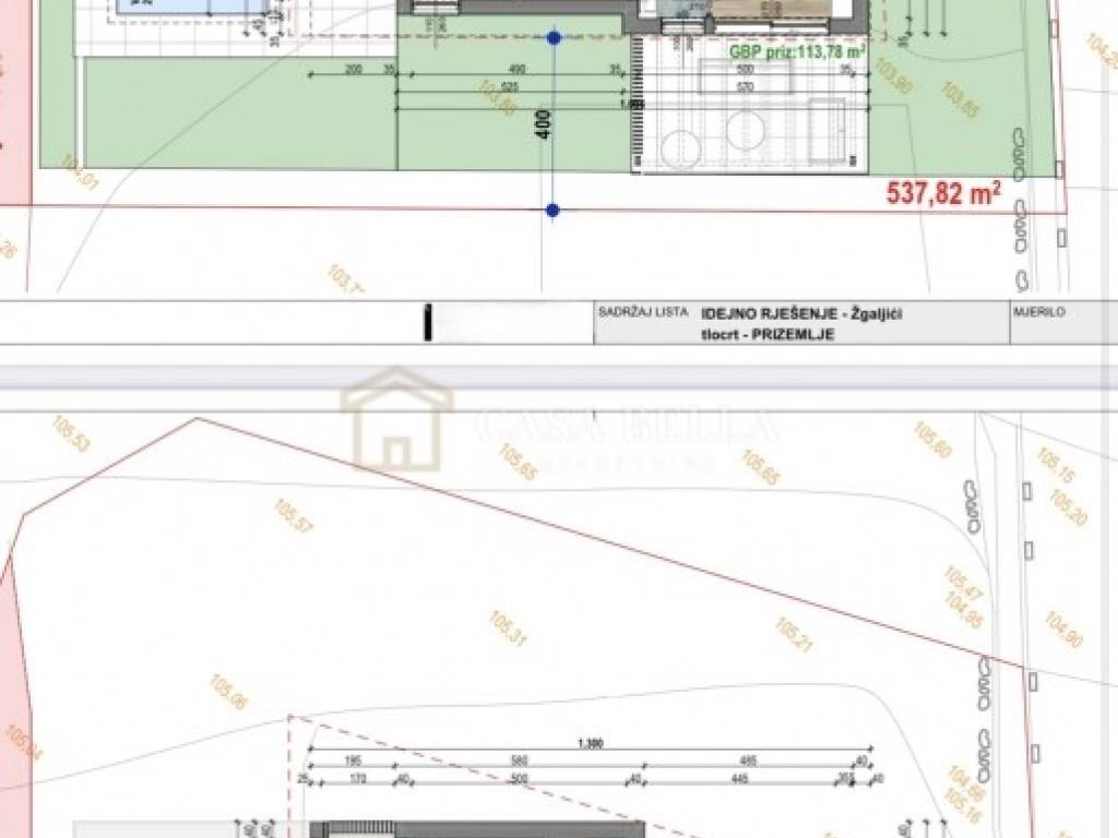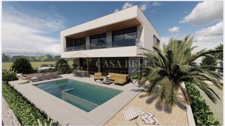 Površina parcele iznosi 537,82 m², a projekt predviđa prostranu kuću s više spavaćih soba, kupaonica, otvorenim dnevnim boravkom te vanjskim prostorom s bazenom i sunčalištem.