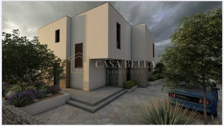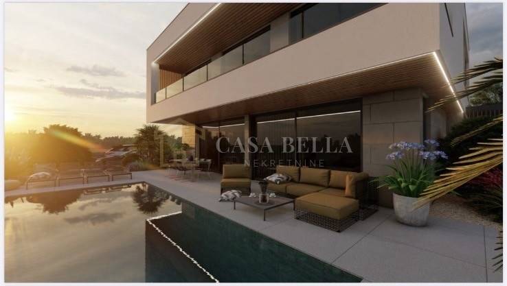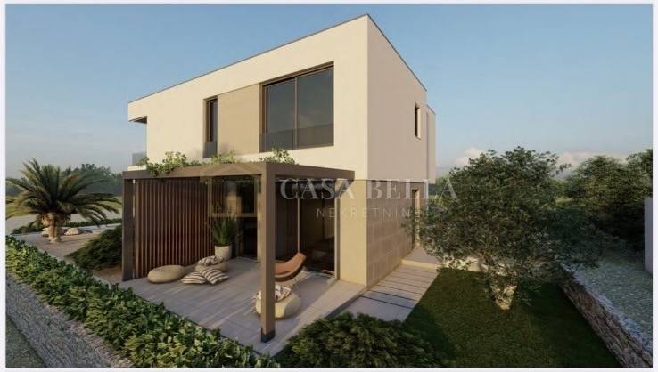 CASA BELLA nekretnine za prodaju – zemljište na otoku Krku, mjesto Žgaljići, s projektom moderne kuće za odmor i bazenom.