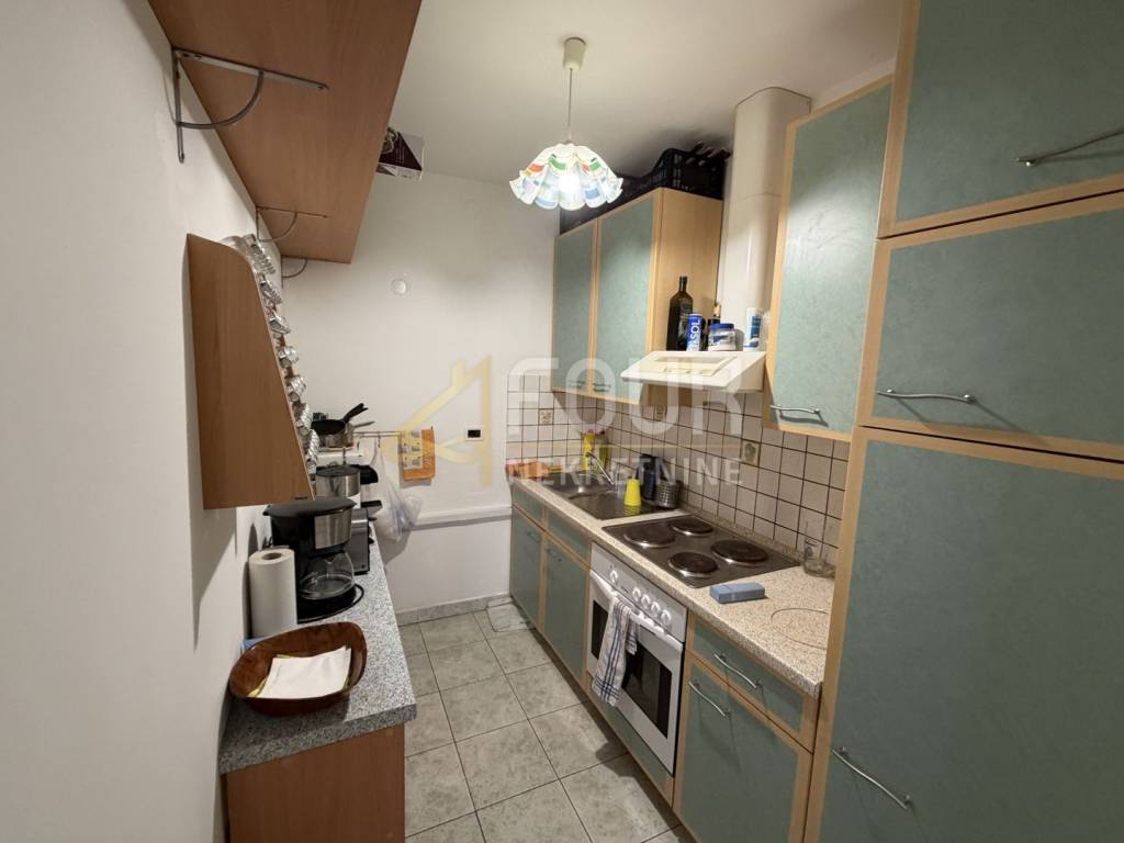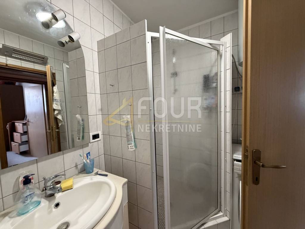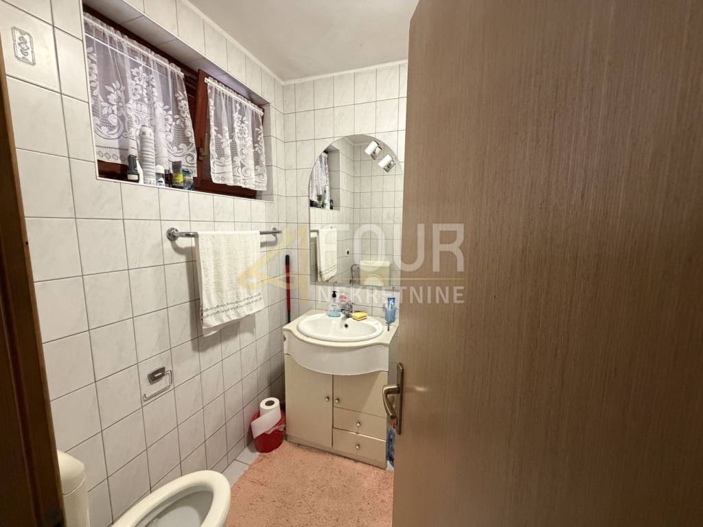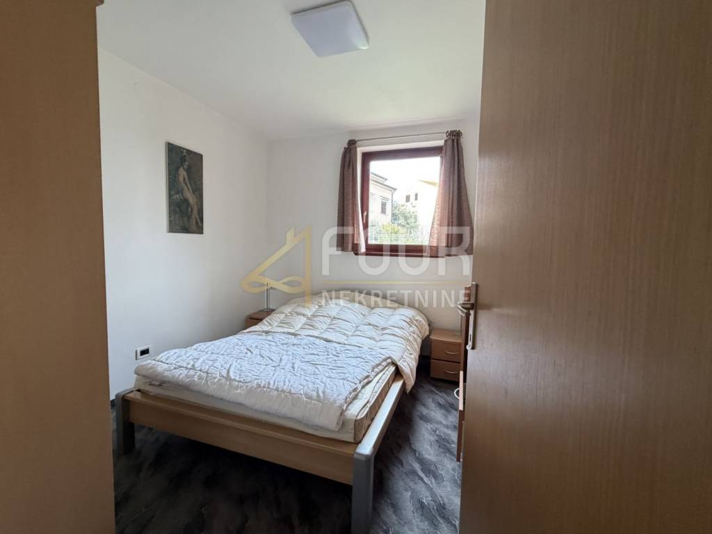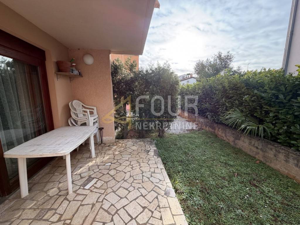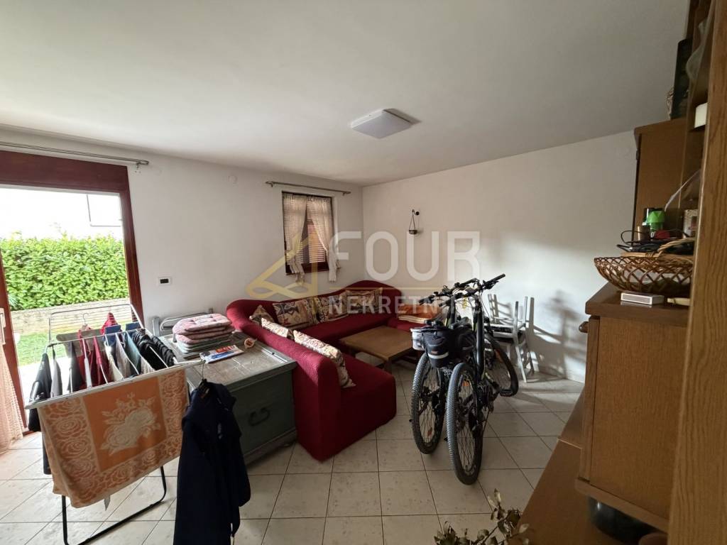 The apartment is located in a quiet part of the settlement in Poreč, just a few minutes walk from the sea. It is situated on the ground floor of a small residential building and has a separate entrance, which gives it an additional sense of privacy and comfort. The entrance hallway connects all the rooms of the apartment. On one side there is the bathroom, while on the other side there are two bedrooms. Continuing down the hallway is the kitchen, and opposite it is the living room with a dining area which leads to a pleasant terrace, ideal for relaxation and outdoor living. The west orientation ensures plenty of natural light throughout the day. Heating and cooling are provided by air conditioning and pellet stoves, allowing for a comfortable stay all year round. The property is in its original condition, offering the future owner the possibility of renovation according to their own wishes.