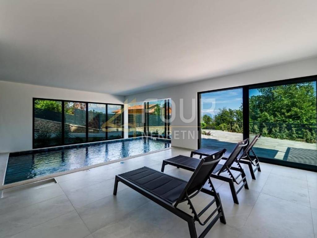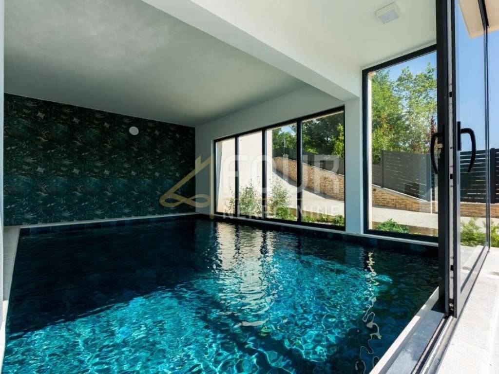 The basement features a garage, as well as spa and wellness facilities, including an indoor pool and a hot tub, providing the perfect space for relaxation and enjoyment.