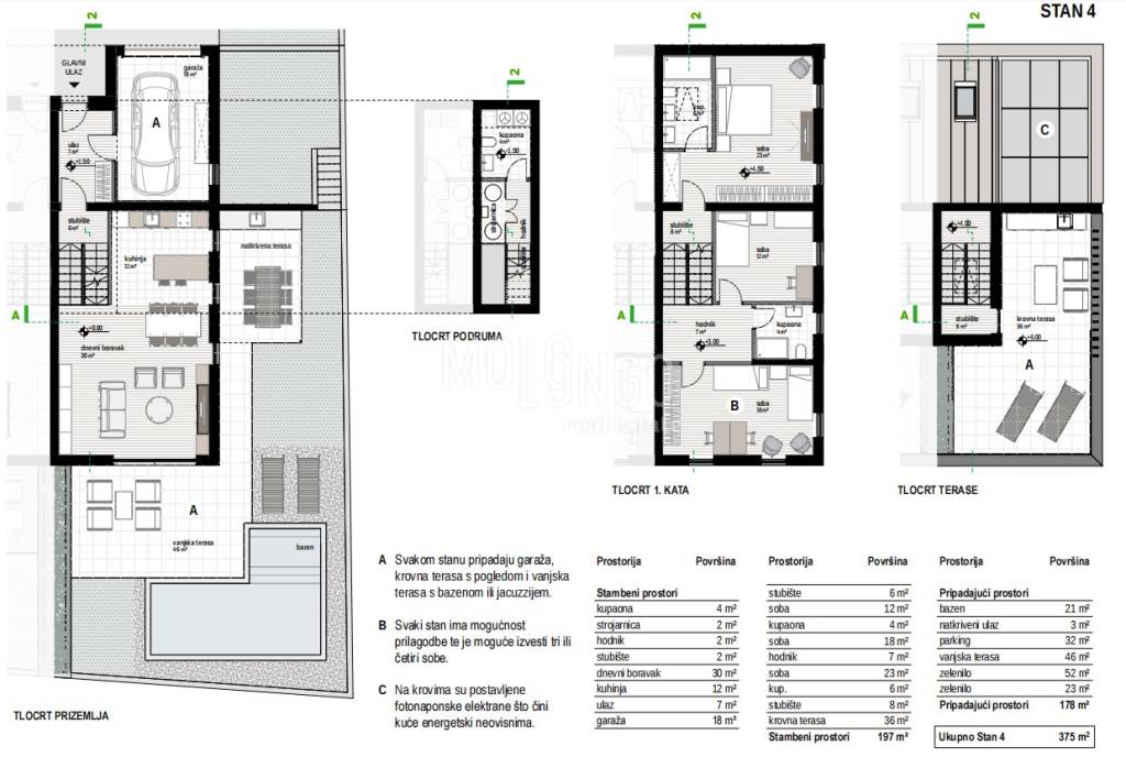 Eco Kostrena project. A unique project in the eastern part of our city in the area of Kostrena. The location itself is exceptional due to the proximity of communication with all facilities in the microlocation itself. The project consists of two semi-detached houses with all facilities that enable the owners more than a comfortable lifestyle. The concept of the house is conceived as a low-energy house with its own electricity production. In this initial phase of construction, it is possible to participate in the creation of your own living space and the arrangement of the final arrangement. The entrance from the garage to the living area and the communication inside the house make life extremely easy for future tenants. The renowned architectural office took care of everything from important constructive ideas to the smallest details. In the visualization of house no. 4. For all additional information and a possible viewing of the property as well as getting to know the investor, please contact agent.