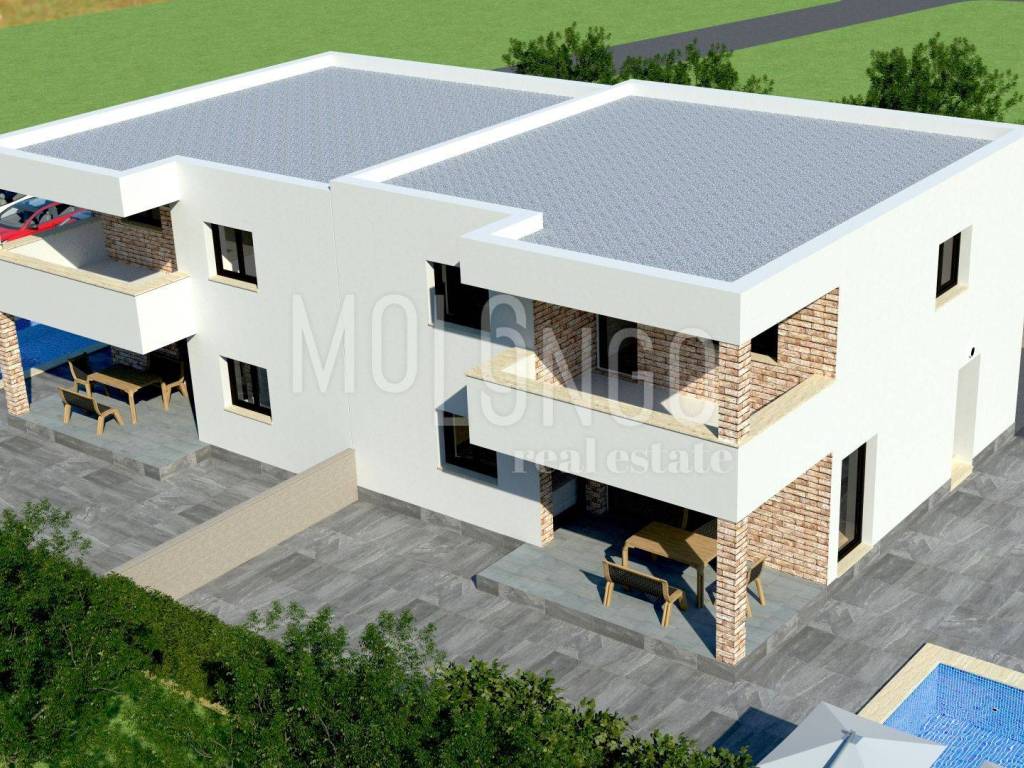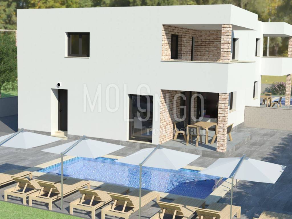 Just 5 km from Poreč and 1.5 km from the sea, on the edge of a settlement between Poreč and Vrsar, this modern semi-detached house is ideal for family living or tourist rental.