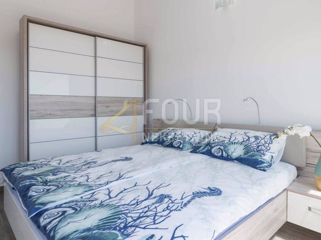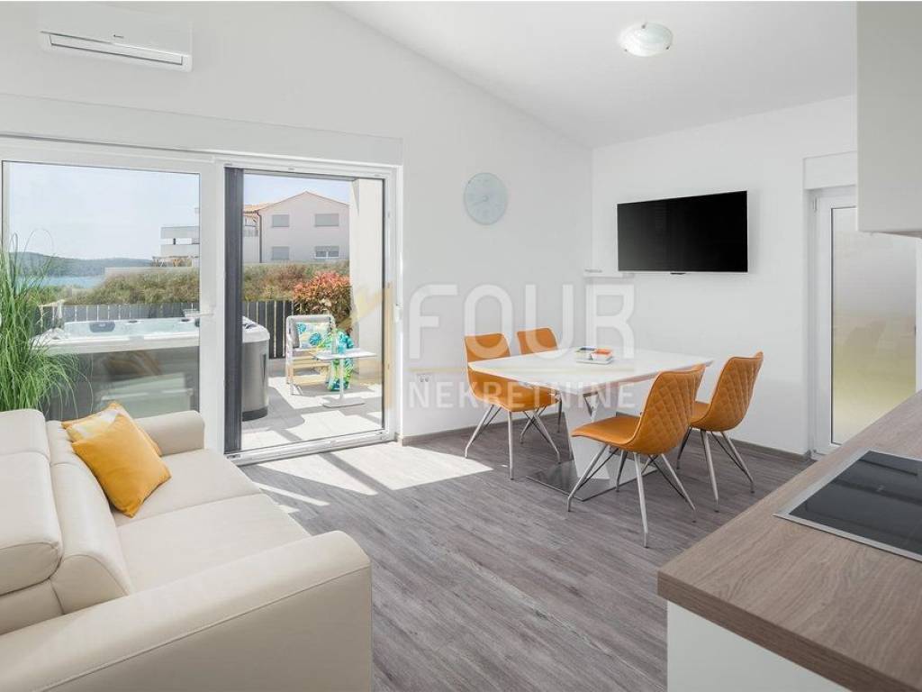 The smaller apartment consists of a kitchen with a dining room and a living room, a bedroom, a bathroom, a beautiful terrace with a jacuzzi and a view of the sea.