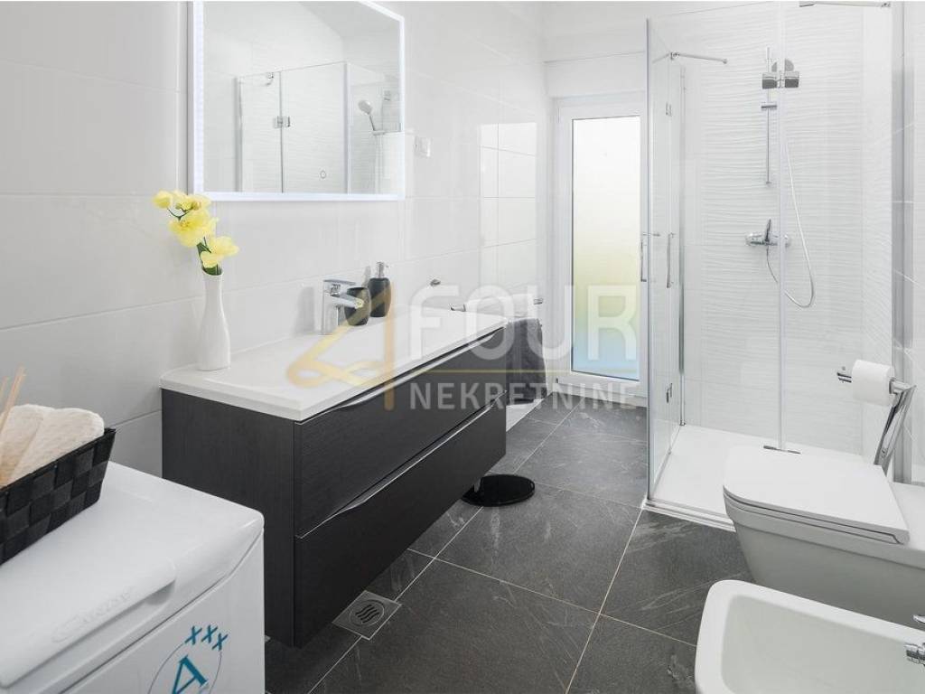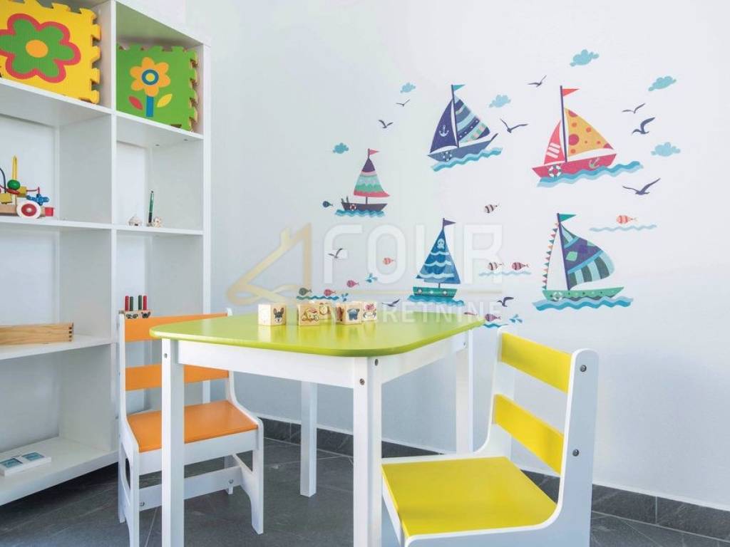 The larger apartment is on two floors, on the lower floor there is a living area - kitchen, dining room and living room, while on the first floor there are 4 bedrooms, 4 bathrooms and a terrace.