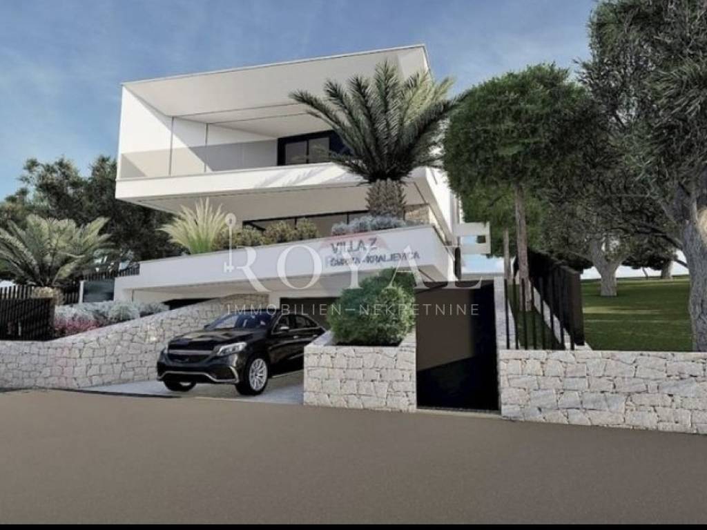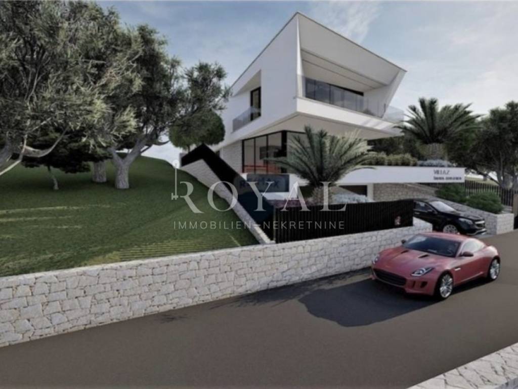 Zemljište se nalazi na laganoj uzvisini i pruža prekrasan panoramski pogled na more, što ovu lokaciju čini idealnom za miran obiteljski život ili kao investiciju za turističko iznajmljivanje.