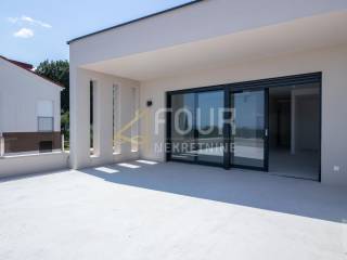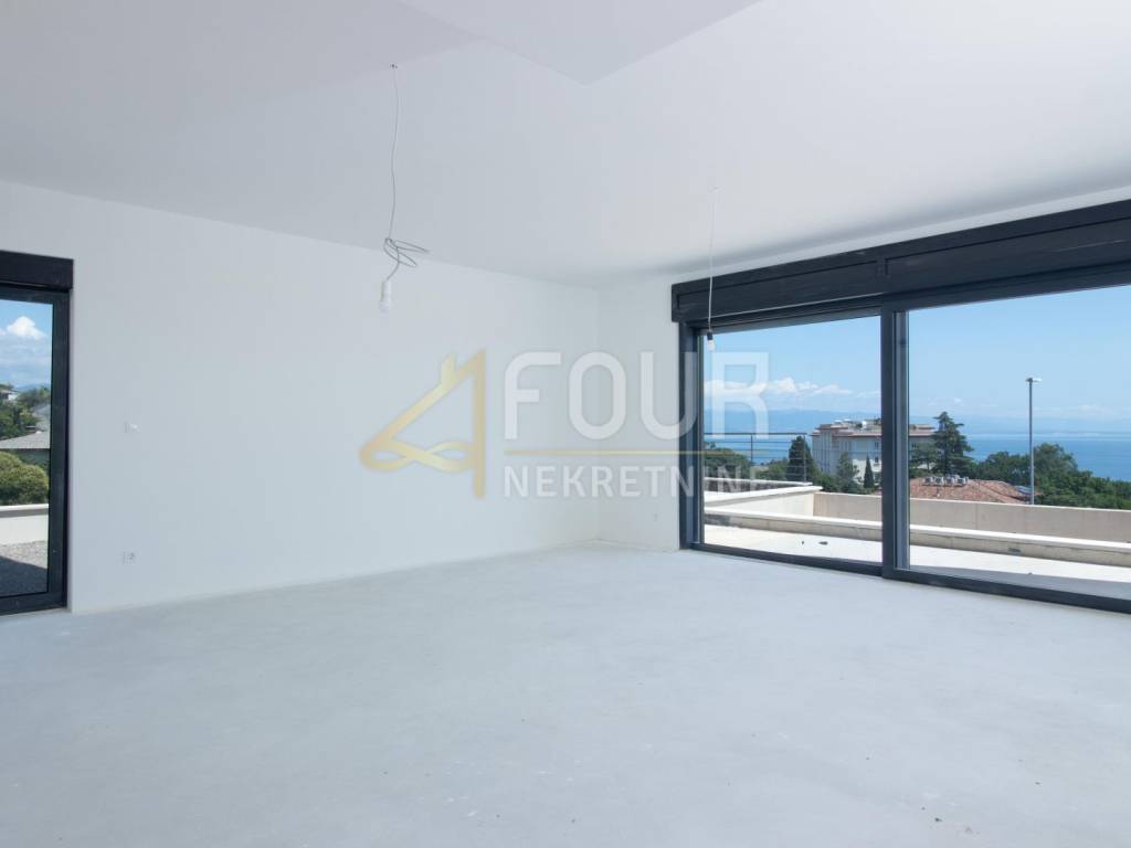On the upper floor there is a second apartment of 113.23 m², with two bedrooms, a living room, and a large terrace offering a stunning panoramic view of the Kvarner Bay.