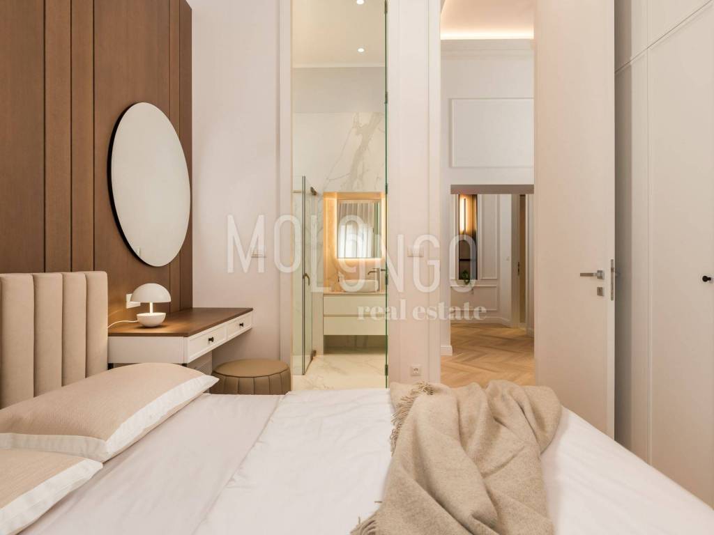 Modern heating and cooling systems ensure comfort, including underfloor heating in the bathrooms and a heat pump in the living room. Every detail in the apartment has been carefully chosen to create a sophisticated and exclusive ambiance that will satisfy even the most demanding tastes.