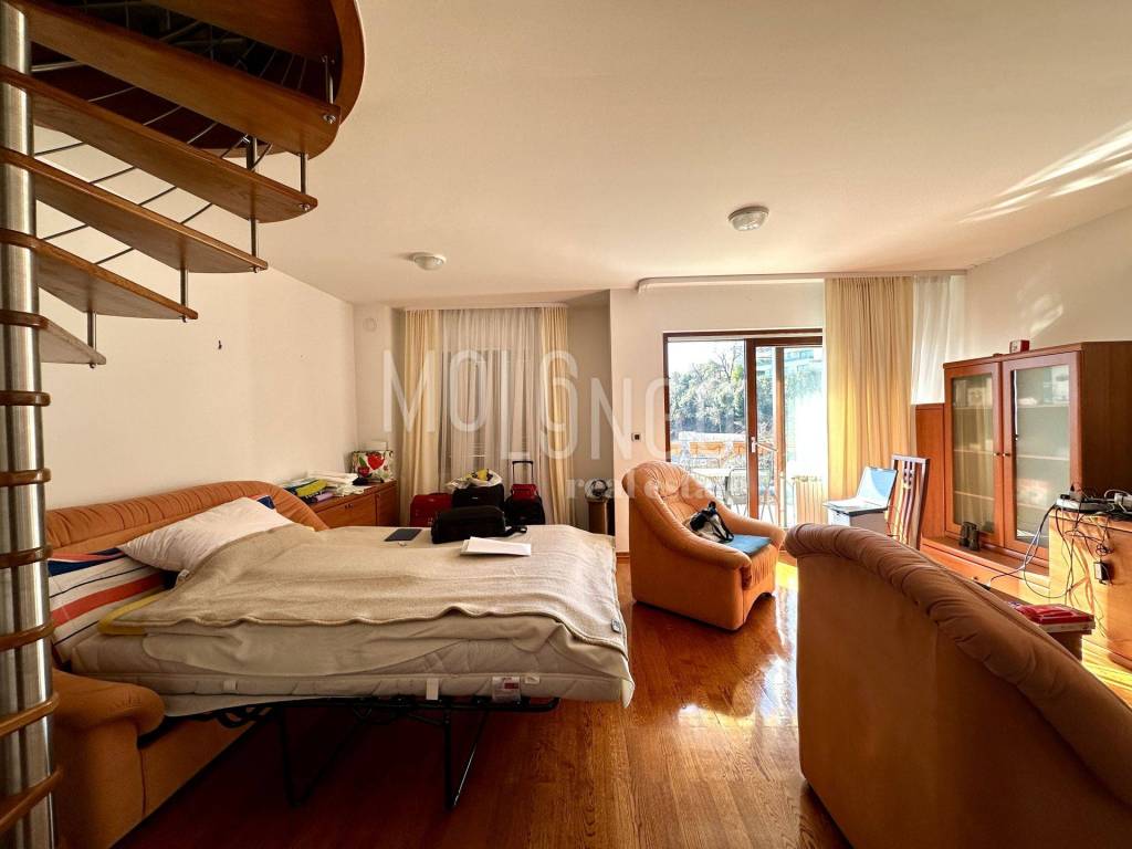 A beautiful duplex apartment located in a quiet neighborhood with a fantastic view of the sea. The apartment spans a total area of 103.33 m² (92.18 m² of interior space + garage) and consists of two levels. It was built in 2004 and is equipped with high-quality materials that guarantee durability and comfort.