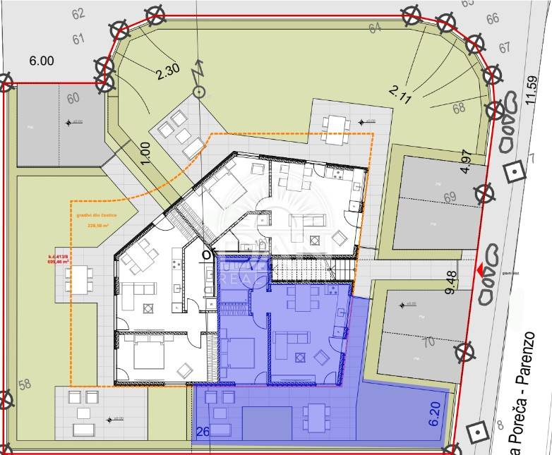 In the surroundings of Poreč, a functionally and thoughtfully designed apartment is for sale, located on the ground floor of a residential building, with a total gross area of 50 m².