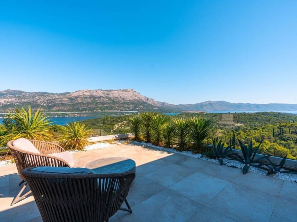 Located just outside the town of Korčula, this contemporary villa offers open views of the Korčula Channel, the Pelješac Peninsula, and the town of Korčula. The villa is built on a 510 m² plot and has a total gross area of 370 m², spread over four levels. It is designed in a contemporary architectural style with minimalist interior and exterior design, and from almost all rooms, terraces, and garden areas there is a view of the sea, the Korčula Channel, the Pelješac Peninsula, Mount Sveti Ilija, the islet of Badija, and the surrounding greenery.   The basement includes a garage for two vehicles and service rooms, while the semi-basement level features a wellness area with a sauna and gym, a laundry room, and technical facilities. The ground floor comprises a living area with a kitchen and dining room, access to a spacious terrace, and three bedrooms, each with its own en-suite bathroom. The first floor houses the master bedroom with a private bathroom and a terrace with a jacuzzi.   The villa is equipped with underfloor heating throughout, heat pumps for heating and cooling, solar photovoltaic panels, and electric vehicle charging stations in the garage. Additional features include aluminum joinery with triple-glazed windows, blackout curtains in the bedrooms, high-quality ceramic finishes, and a Smart Home system. The wellness area and sauna feature a glass wall overlooking the pool, while the outdoor area is landscaped with Mediterranean plants and includes an outdoor barbecue. The northeast orientation provides natural protection from strong sunlight, and the mild climate makes the villa suitable for year-round use.   The villa has an A+ energy certificate, is fully furnished, and comes with valid building and occupancy permits, as well as clear ownership documentation. In addition to the garage, two outdoor parking spaces are provided.   The seller is a legal entity, and VAT is added to the purchase price. Another villa of the same project is located on the site, offering the possibility to purchase one or both properties. The property is 1,5 km from the sea and Žrnovska Banja beach, and 3 km from the historic old town of Korčula.