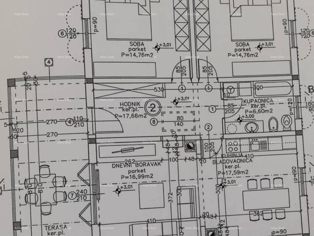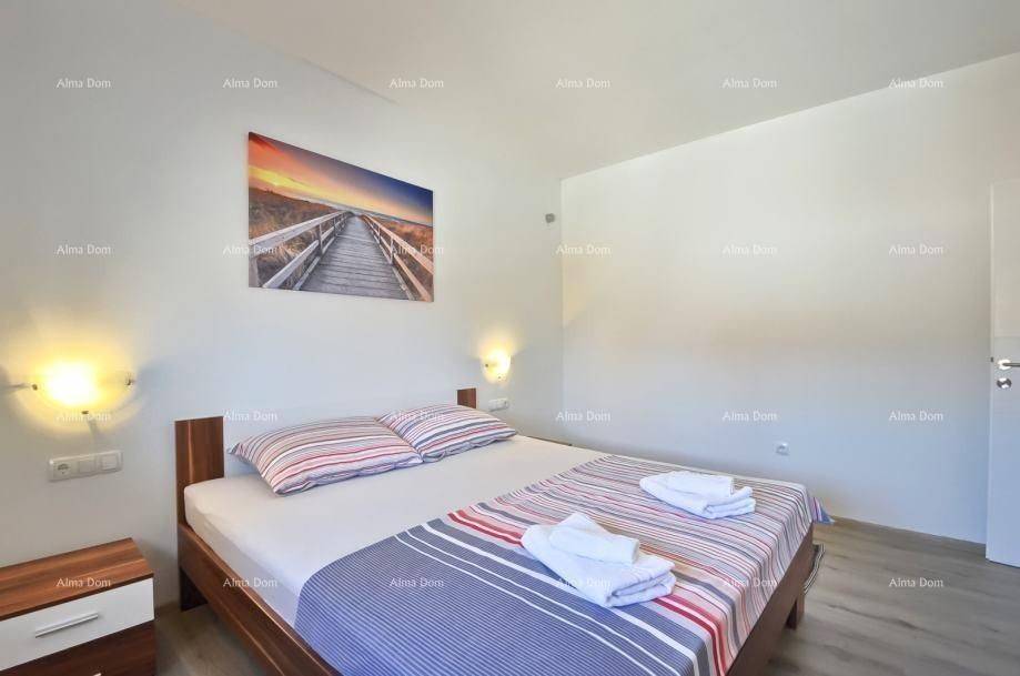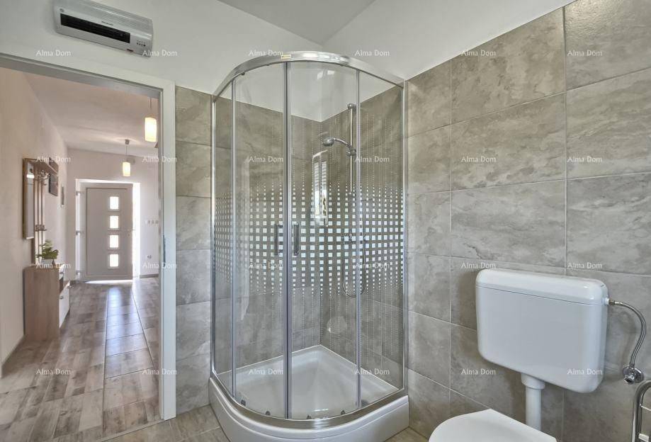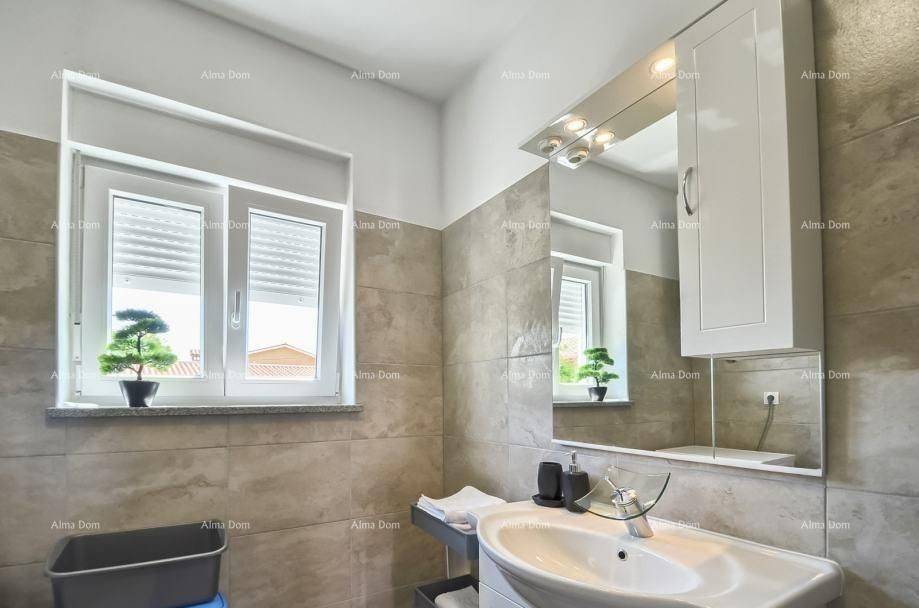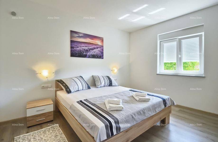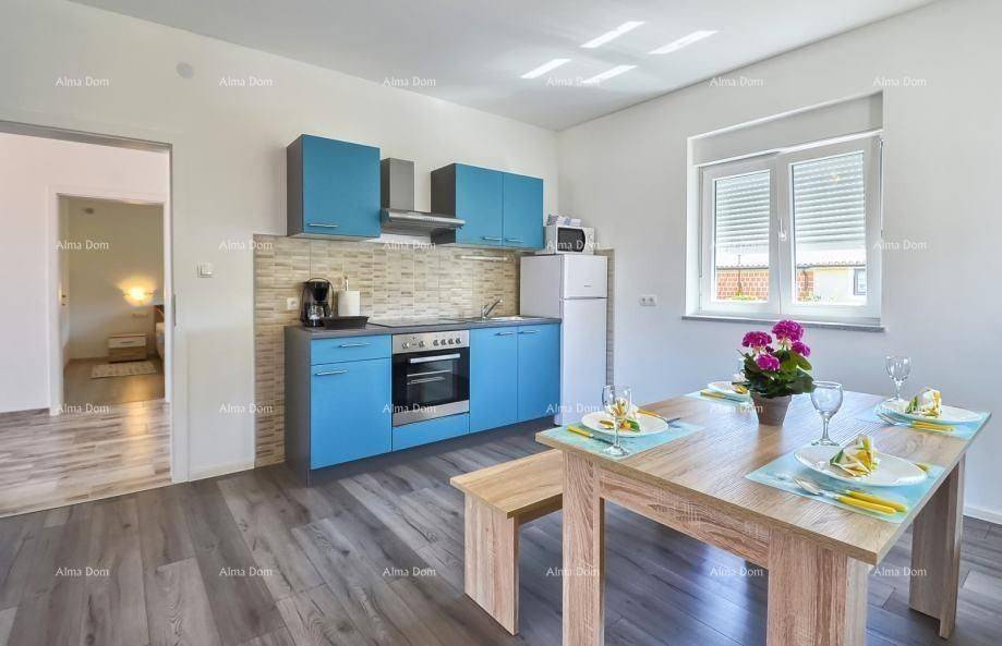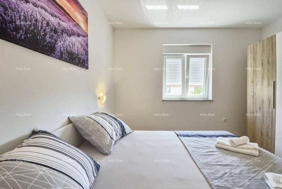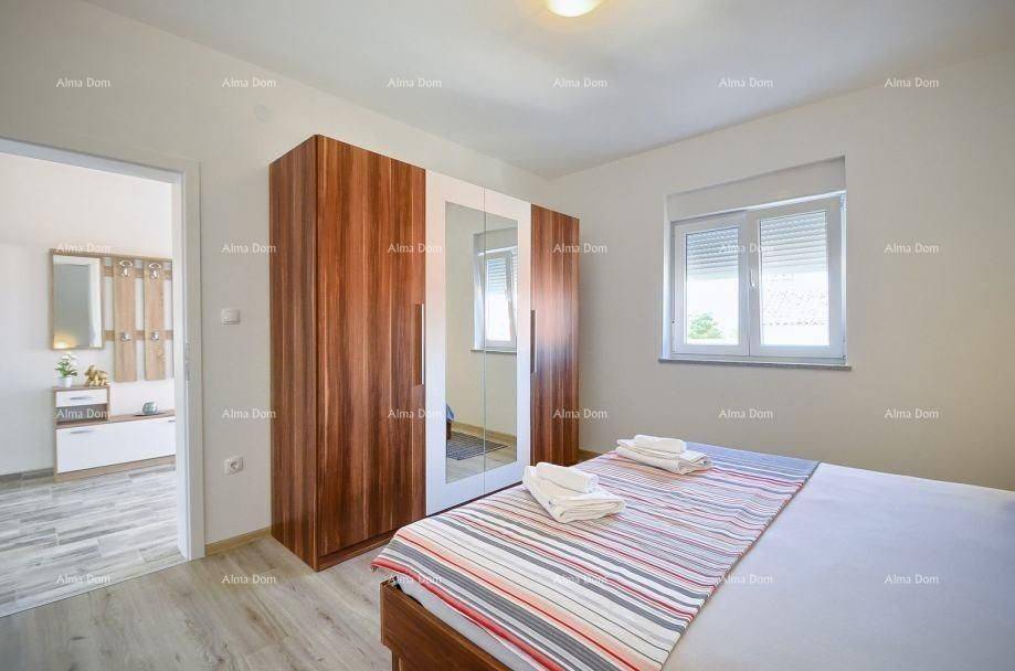 We are selling a beautiful two-story apartment in a charming fishing town, Ližnjan, close to all necessary amenities for everyday needs and comfortable living.The apartment, with a surface area of 150 m², is located on the 1st floor of a subdivided house.The first floor consists of an entrance area with a wardrobe, a hallway, an open-space living room with a kitchen and dining area, two bedrooms, a bathroom, and a large covered loggia, accessible from the living space and extending along the entire length of the apartment.The second floor includes space for two bedrooms and a bathroom. This attic space can be converted into an additional residential unit, including a living area, a bedroom, and a bathroom.The apartment is equipped with air conditioning for heating and cooling, as well as a chimney with the option to install a pellet or wood stove. High-quality facade and roof insulation ensure comfortable living throughout the year.The apartment also comes with a yard of 177 m², where there is an auxiliary building of 93 m², currently used as a garage. There is also the possibility of building a swimming pool on the property.The auxiliary building can be converted into an additional residential unit.The apartment includes two private marked parking spaces in the shared courtyard. The future owner has the option to cover the parking spaces.The apartment is sold furnished, and there is an option for purchase through a mortgage loan.For more information, please contact:Azra+385 91 611 5706+385 98 420 885azra@almadominvest.com