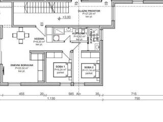 The building will consist of a ground floor, a first floor and a second floor.Apartment S5, 1st floor - 82 m2it will consist of the following rooms:hallway, kitchen, living room with dining room, 2 bedrooms, 2 bathrooms and loggia.They are additionally purchased with the apartment; parking space in front of the buildingInfo:+385 91 611 5706azra@almadominvest.com+385 98420885www.almadom.com