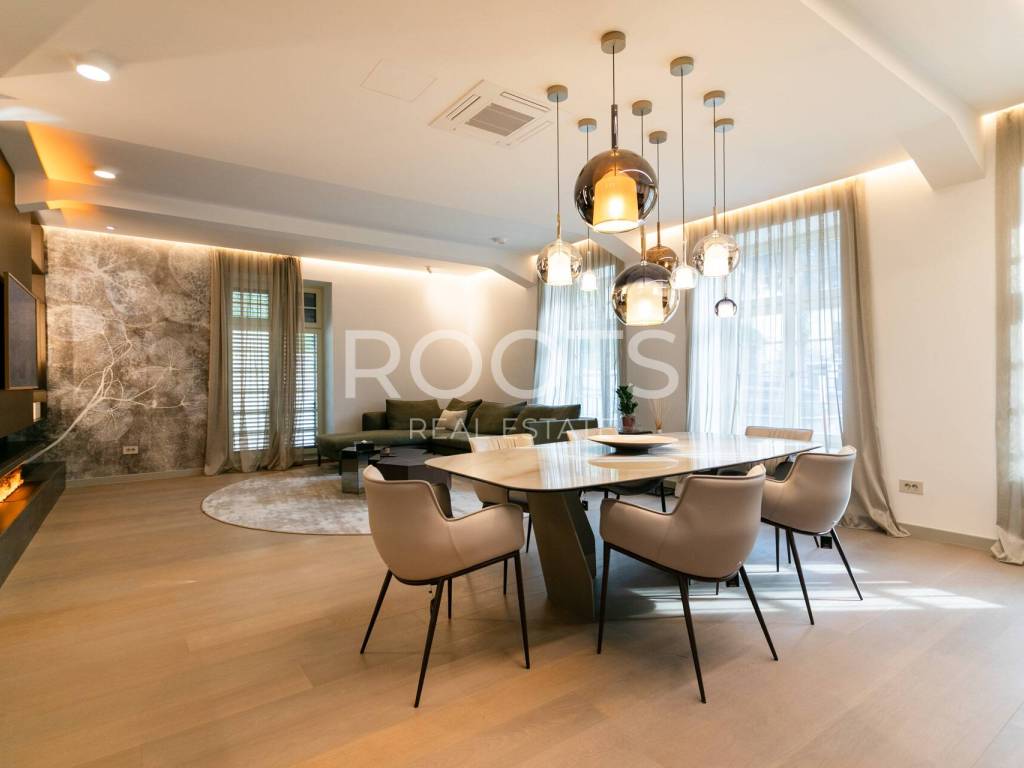 Zagreb, Britanski trg, ulica Vladimira Nazora, moderan, luksuzan i kompletno uređen četverosoban stan u potpuno obnovljenoj austrougarskoj vili s vrtom i 2 parking mjesta.