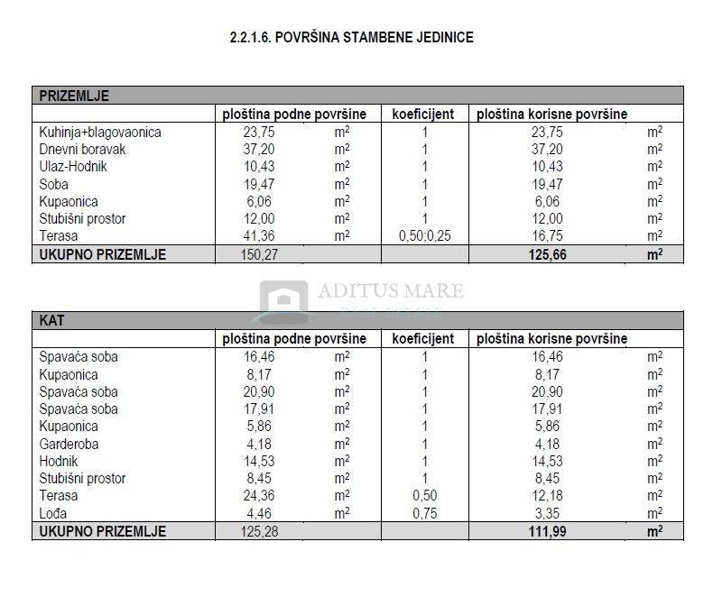 Vila se gradi kvalitetnim materijalima, po poslijednjem standardu gradnje te od opreme izdvajamo: