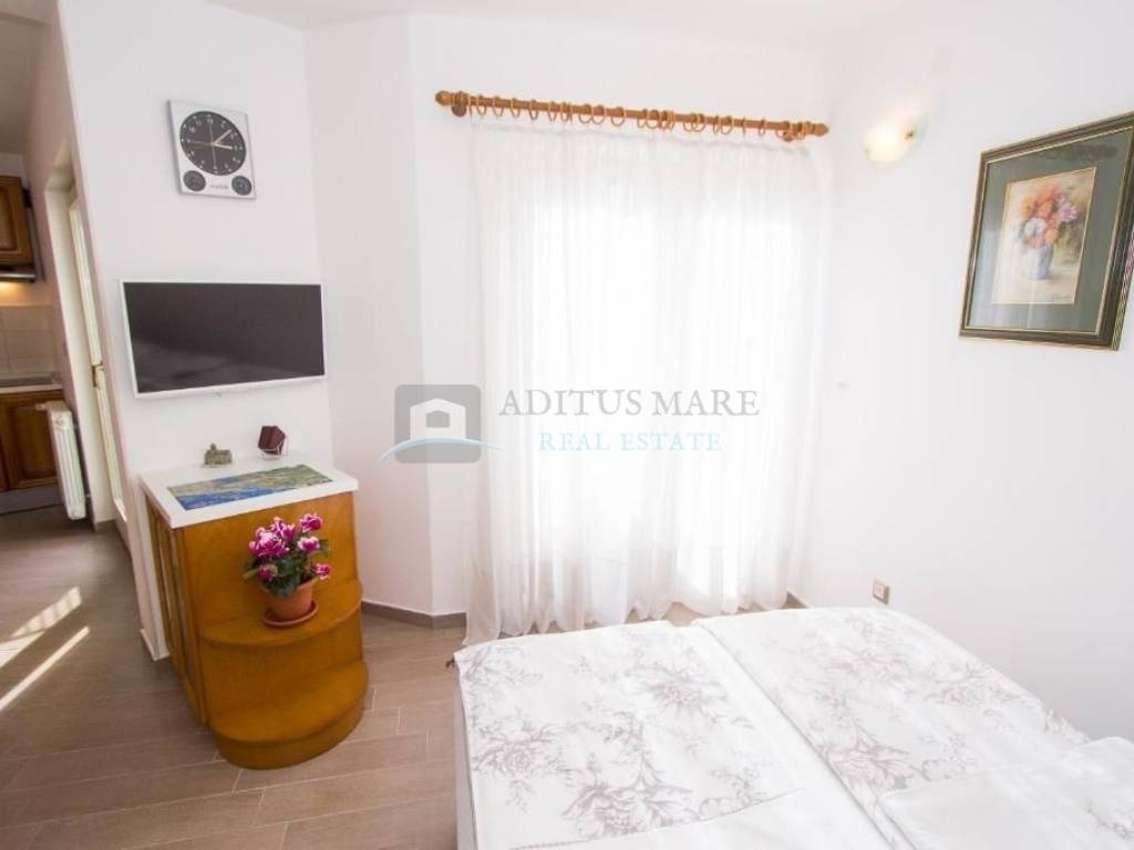 U prizemlju se nalazi ured (25 m2) i lijepo uređen studio apartman (34 m2) sa terasom, potpuno opremljen. Idealno za najam, što donosi dodatan prihod tijekom cijele godine.