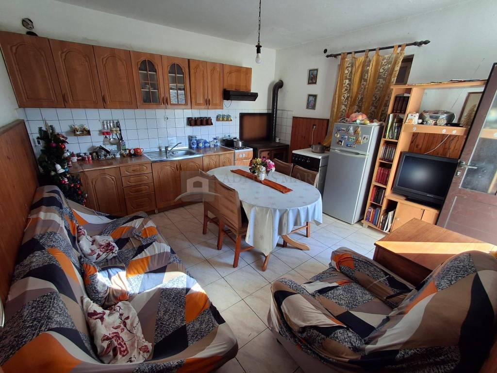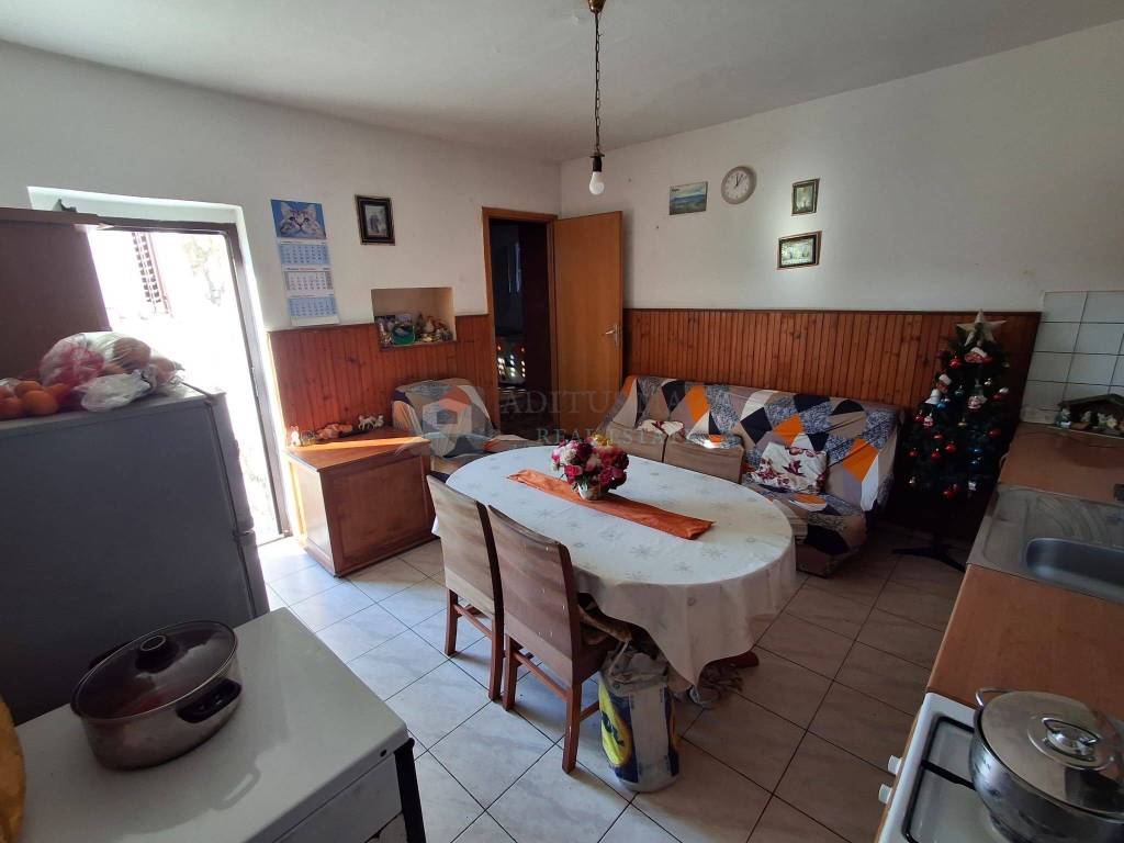 Kuća se sastoji od velikog podruma/skladišta koje se nalazi u razini polusuterena i prizemlja, na prvom katu nalazi se velika terasa, ulaz, hodnik, dnevni boravak sa kuhinjom i blagovaonom, 3 spavaće sobe te kupaone. Kuća je korištena za život, potrebna joj je adaptacija, trenutno se koriste dnevna prostorija, dvije sobe i kupaona dok jedna soba kao i podrum zahtjevaju adaptaciju. Dvorište je veliko te se u njemu nalazi na istoj čestici još jedna manja kamena kuća koja zahtjeva potpunu adaptaciju te bi se mogla prenamijeniti u stambeni objekt sa galerijom.