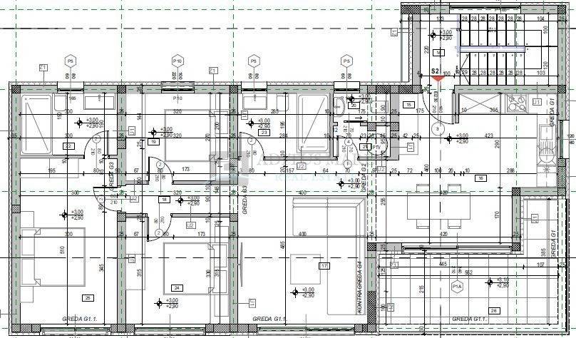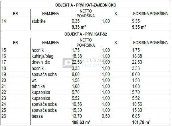 Stambena jedinica S2 nalazi se na 1. katu OBJEKTA A te se sastoji od hodnika, tri spavaće sobe od kojih jedna ima vlastitu kupaonicu, zajedničke kupaonice, wc-a, dnevnog prostora, kuhinje i blagovaone s izlazom na terasu (6.85m).