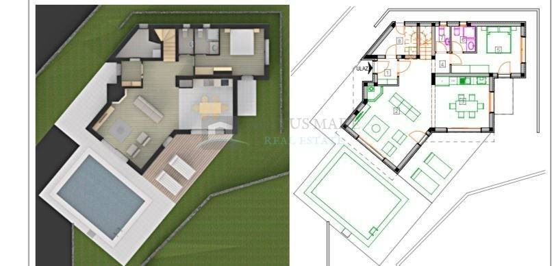 Villa ukupne stambene površine 167,27m2 je na dvije etaže te se sastoji od prizemlja i prvog kata.