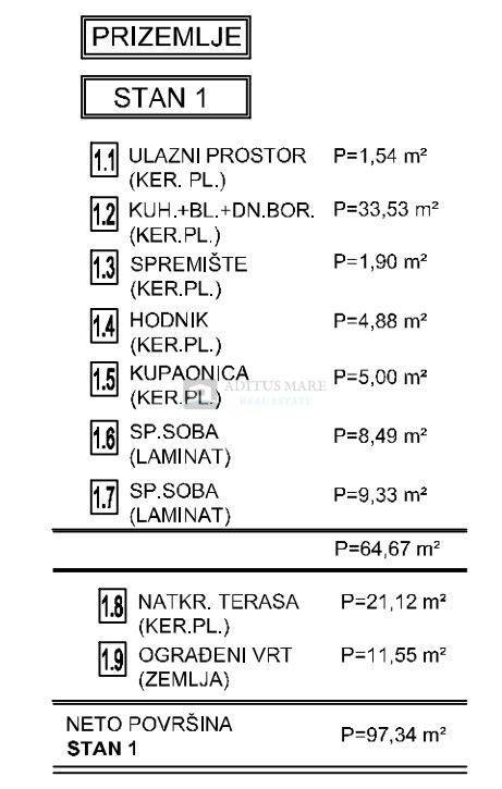 Ukupna neto površina: 97,34 m