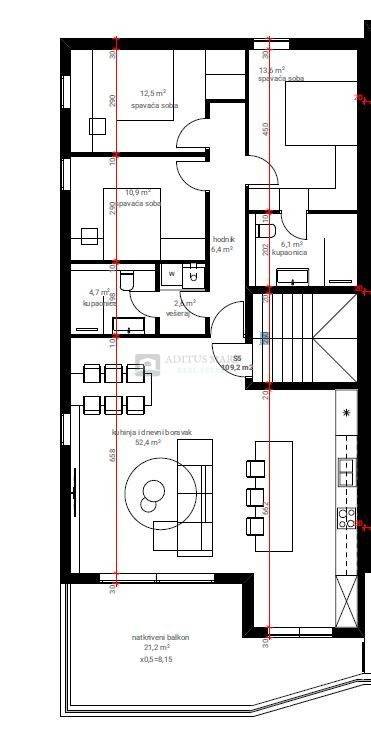 Površina stana: 109,2 m + terasa 21,2 m