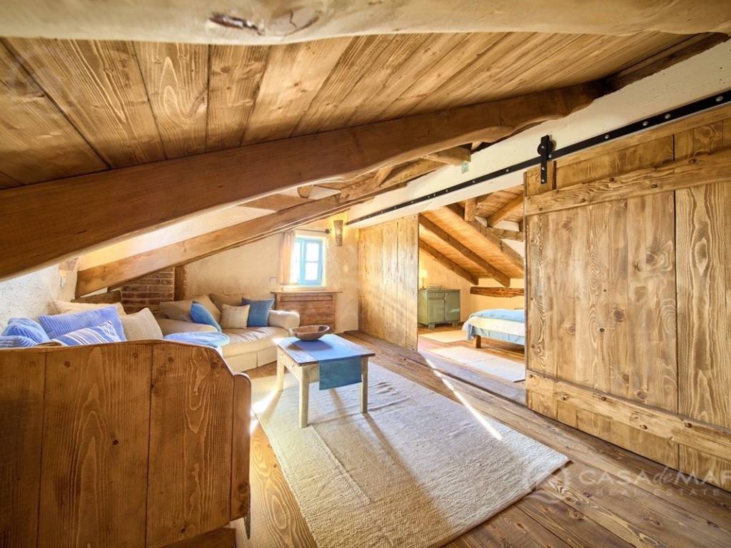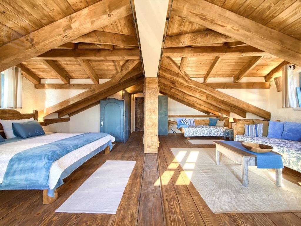 There are two more bedrooms and a bathroom in the attic.