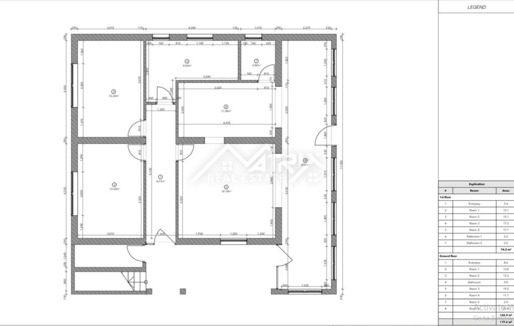The house is sold with the renovated ground floor. Included in the price are the kitchen with appliances, air conditioning units, fireplace, built-in bathroom cabinets, and a wardrobe. Sale with furniture is possible by agreement.