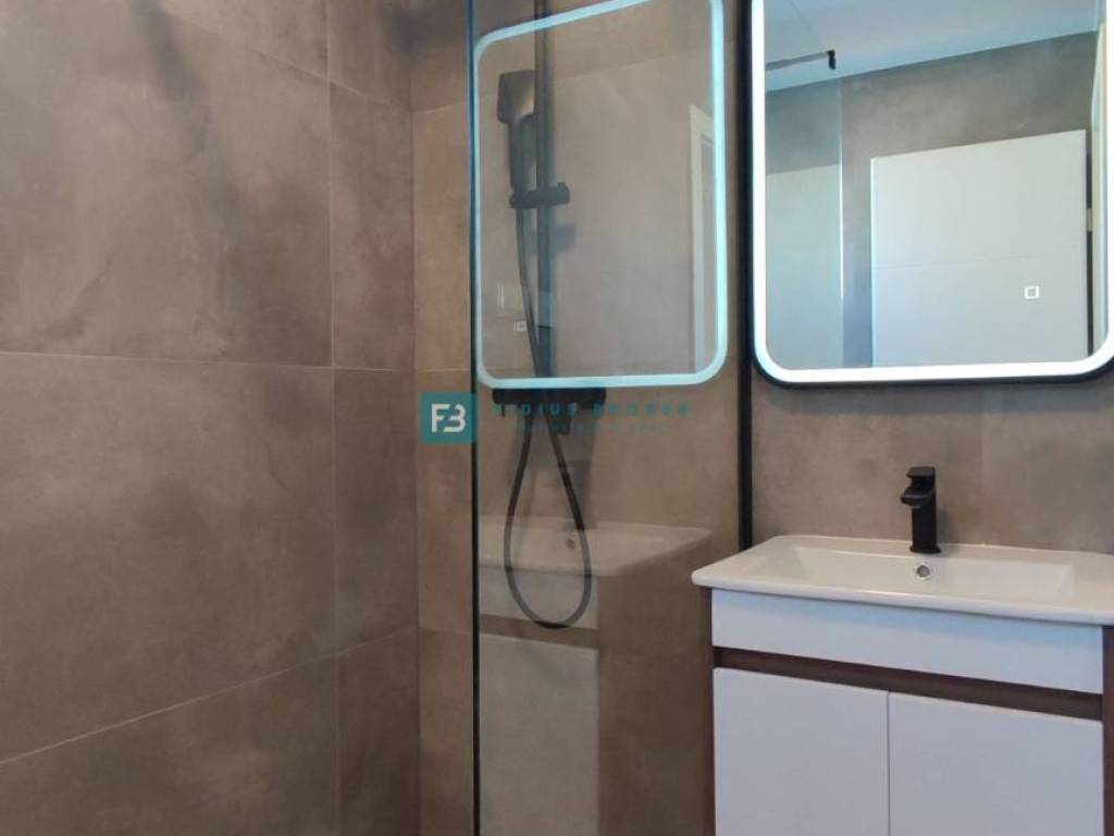 The property is located in a quiet location, 1500 m from the city center and 1800 m from the beach. A small residential building with a total of 8 apartments (4 duplex apartments and 4 apartments on the 2nd floor of the building) is under construction. The modern-looking residential building will consist of three floors: ground floor + 1st floor + 2nd floor. The building is being built with quality materials and will be equipped according to the latest construction standards: polystyrene facade, anthracite-colored PVC joinery, ALU lift-and-slide glass walls, burglar-proof and fire-resistant entrance doors, electric roller shutters, mosquito nets, MDF interior doors, high-quality ceramic flooring, laminate flooring in the bedrooms, modern bathroom fixtures, electric underfloor heating in the living room and bathroom, glass railings on the terraces, air conditioning in the bedrooms and living room. The building is completed and ready to move in.