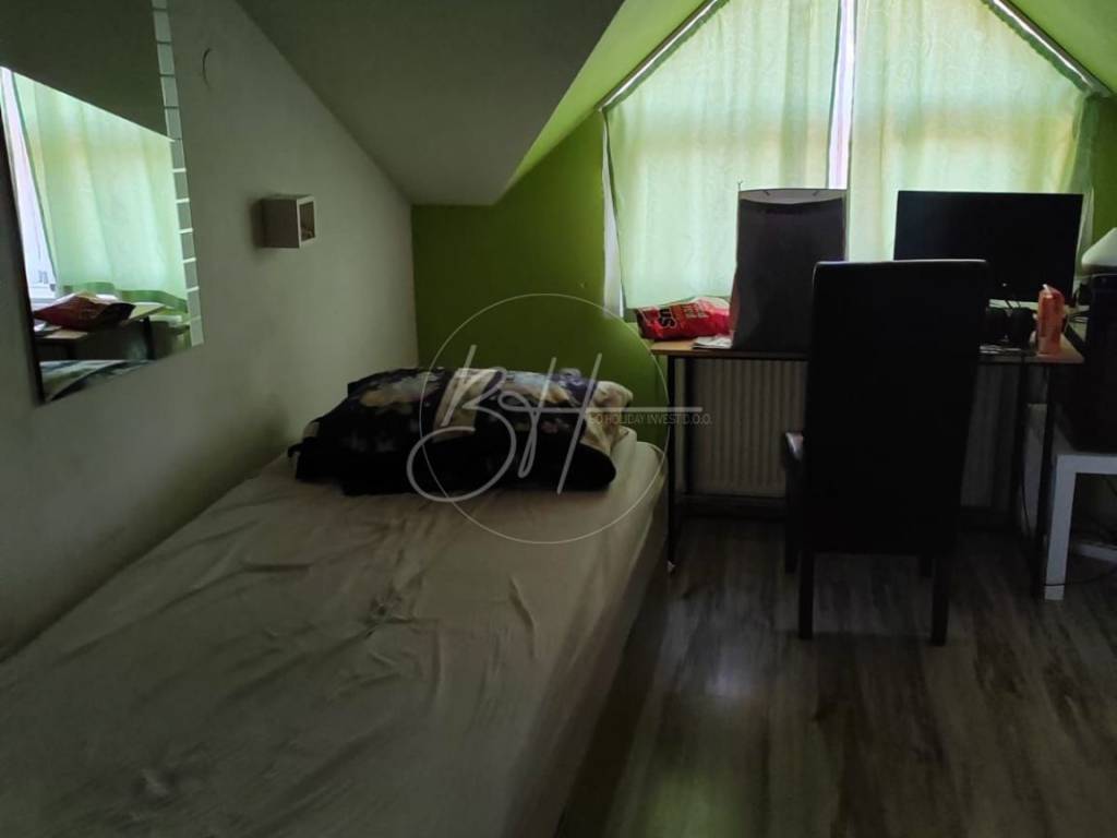 The attic has a hallway, an entrance hall, a bathroom, four bedrooms and a storage room, and the space is extremely functionally arranged and comfortable for everyday life.