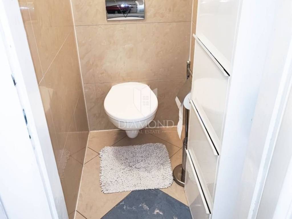 The apartment with a total area of 113.29 m² consists of a living room, two bedrooms, kitchen, additional kitchen, two bathrooms, separate toilet, hallway and balcony. The special value of this property is the room with an area of approximately 40 m² that is currently converted into an office with a separate entrance, private bathroom and small kitchen, which opens up a number of usage options.