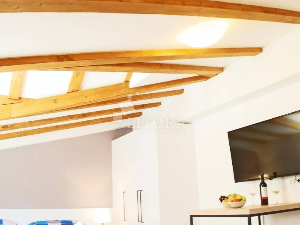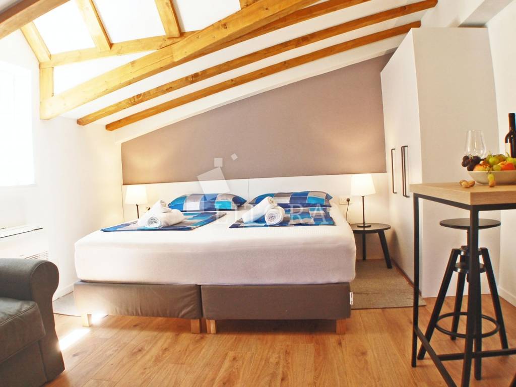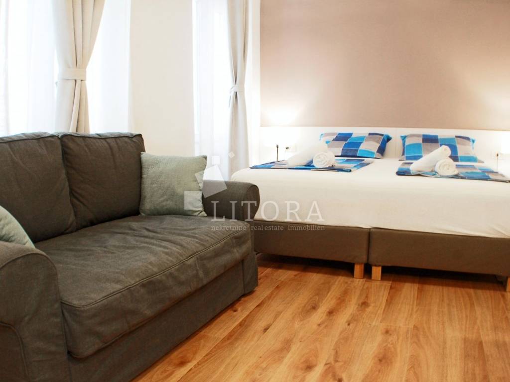 Located in the heart of Šibenik’s historic old town, within a quiet pedestrian zone, this fully renovated stone house extends over four floors with a total living area of 115 m². The property was rebuilt in 2017 and is divided into four modernly designed studio apartments, each occupying its own floor. Every unit consists of an open-plan living and sleeping area with a mini kitchen, as well as a spacious and contemporary bathroom. Additional value is provided by a charming inner courtyard measuring 19.18 m². Great care has been taken to preserve the authenticity and character of traditional Dalmatian stone architecture. The exterior stone walls have been restored through sandblasting and repointing, while the interiors feature high-quality PVC joinery and a reinforced concrete mezzanine structure. The house is fully furnished and equipped, with each apartment having its own air-conditioning unit. Further added value comes from smart locks and a self check-in system, allowing for easy property management and ensuring guests a comfortable, flexible, and carefree stay. The property is sold with all furniture and inventory included, enabling immediate continuation of tourist rental activity. This property represents an outstanding investment opportunity in the very center of Šibenik, just steps away from cultural landmarks, restaurants, and the authentic Mediterranean atmosphere of the old town. The distance to the nearest beach is 1,400 m.
