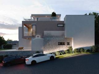 Stan ima funkcionalan raspored s prostranim dnevnim boravkom i kuhinjom u prizemlju te spavaćim dijelom na katu. Velike staklene stijene i terase osiguravaju obilje svjetla i ugodan boravak tijekom cijele godine.