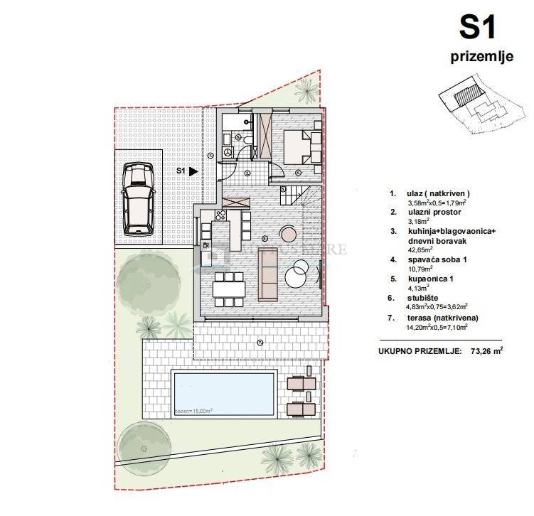 Prizemlje: 73,26 m