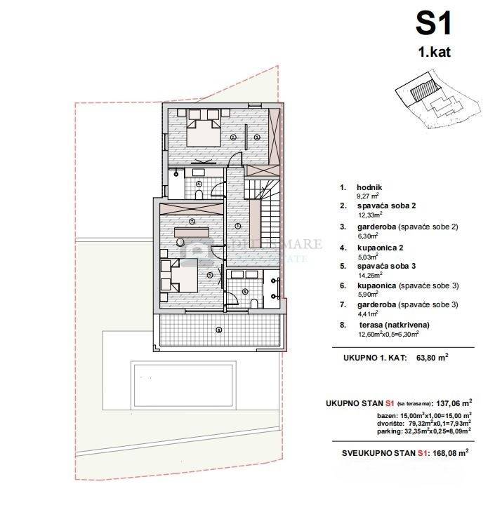 Ukupna obračunska površina s pripadcima: 168,08 m