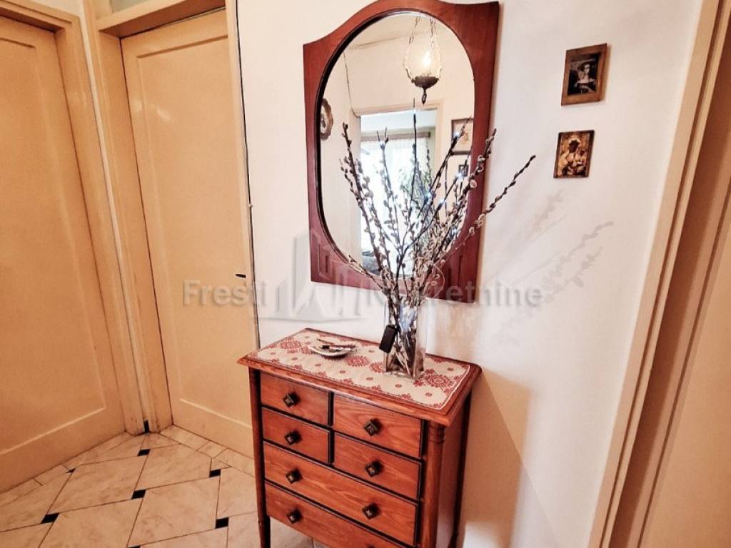Sastoji se od dnevnog boravka s blagovaonicom i kuhinje , tri udobne sobe, kupaonice s tuš kadom i toaletom, prostranog predsoblja, posebnog dijela ostave i loggie s cvijećem koja se proteže uz duž cijele južne strane stana s pogledom na zadarsku rivu i park.