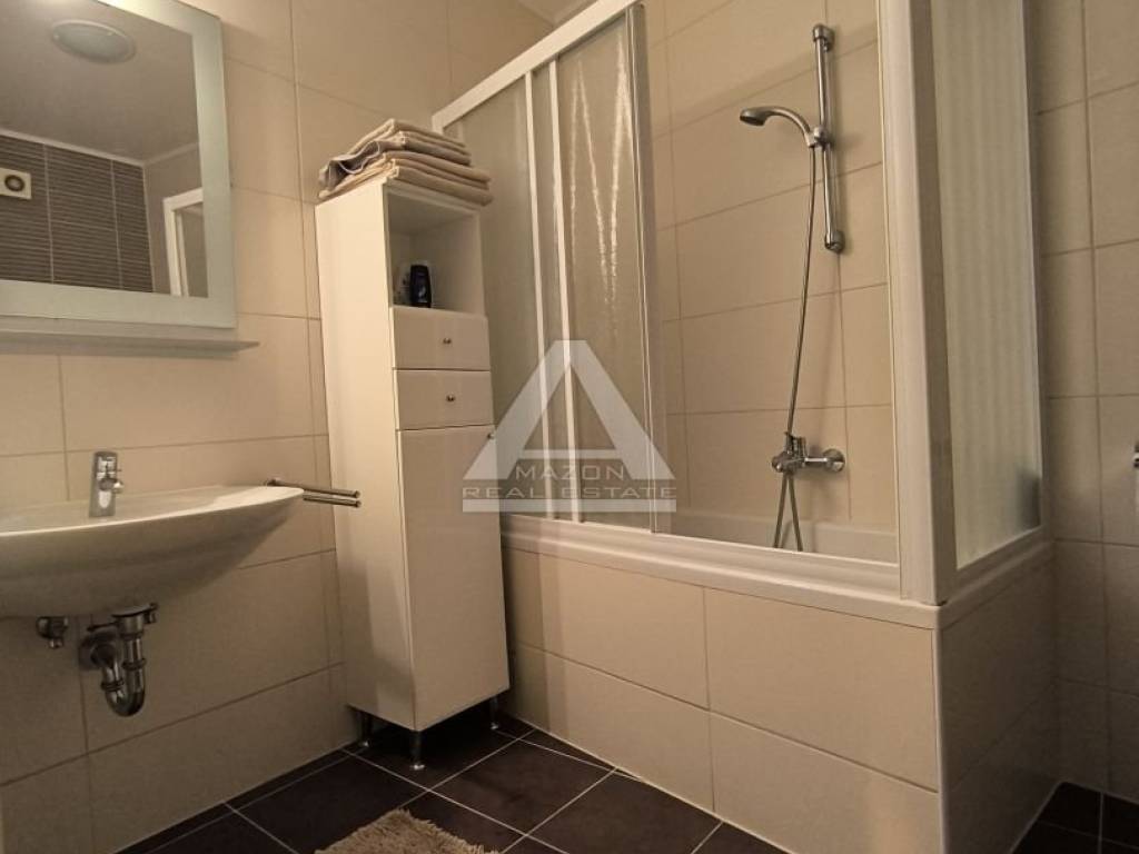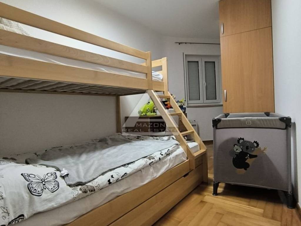 Umag, Monterol settlement, apartment for sale in a residential building just 100 meters from the sea! The apartment is on the first floor, has 84 m2, consists of a kitchen, living room, terrace, two bedrooms, bathroom. The apartment also has a garage space for a car. The building has a large yard with outdoor parking, barbecue, green area, children's playground. The apartment is maintained and is fully furnished. Heating is on air conditioning and there is underfloor heating in the bathroom.