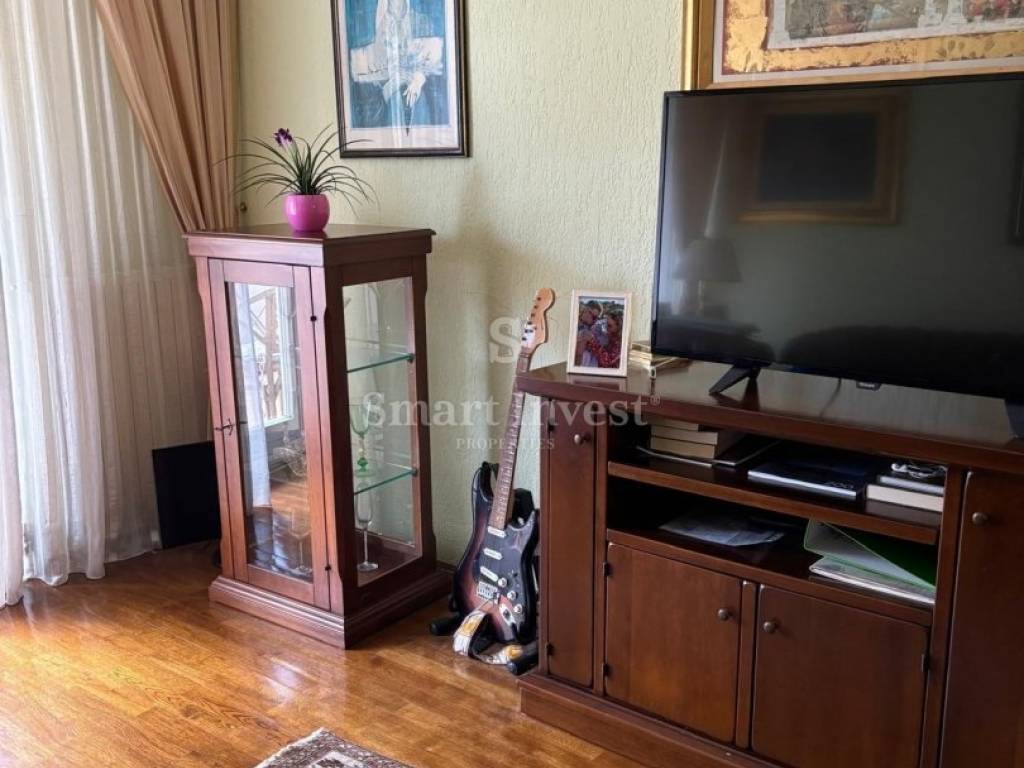 The apartment, with a total area of 74 m, is located on the second floor of a small residential building, in a dead-end street surrounded by greenery and parks, which guarantees peace and privacy.