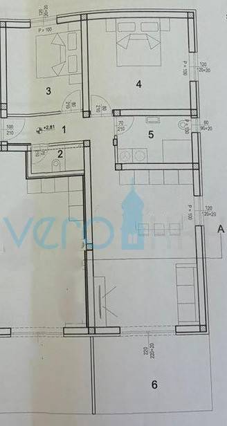 The apartment with a total area of 78.07 m2 is located on the first floor of a multi-residential building with 8 apartments. It consists of a hallway, two bedrooms, a bathroom, a large open space that combines the kitchen, dining room, and living room with access to a covered terrace with a view of 9.95 m2. The apartment includes two parking spaces in the landscaped yard.
