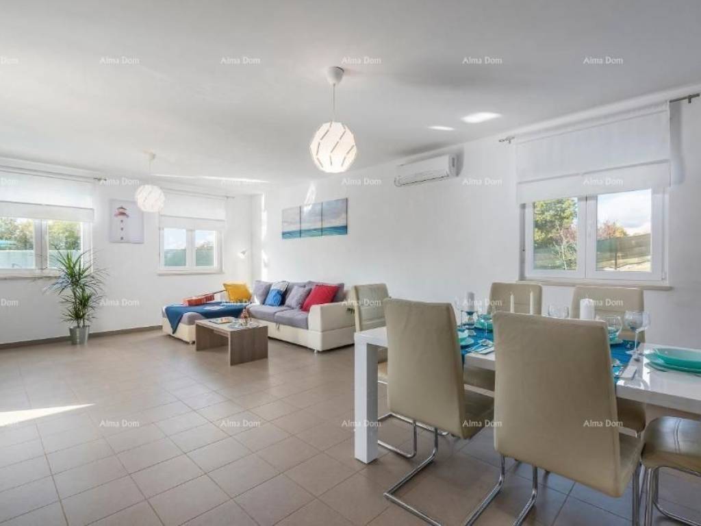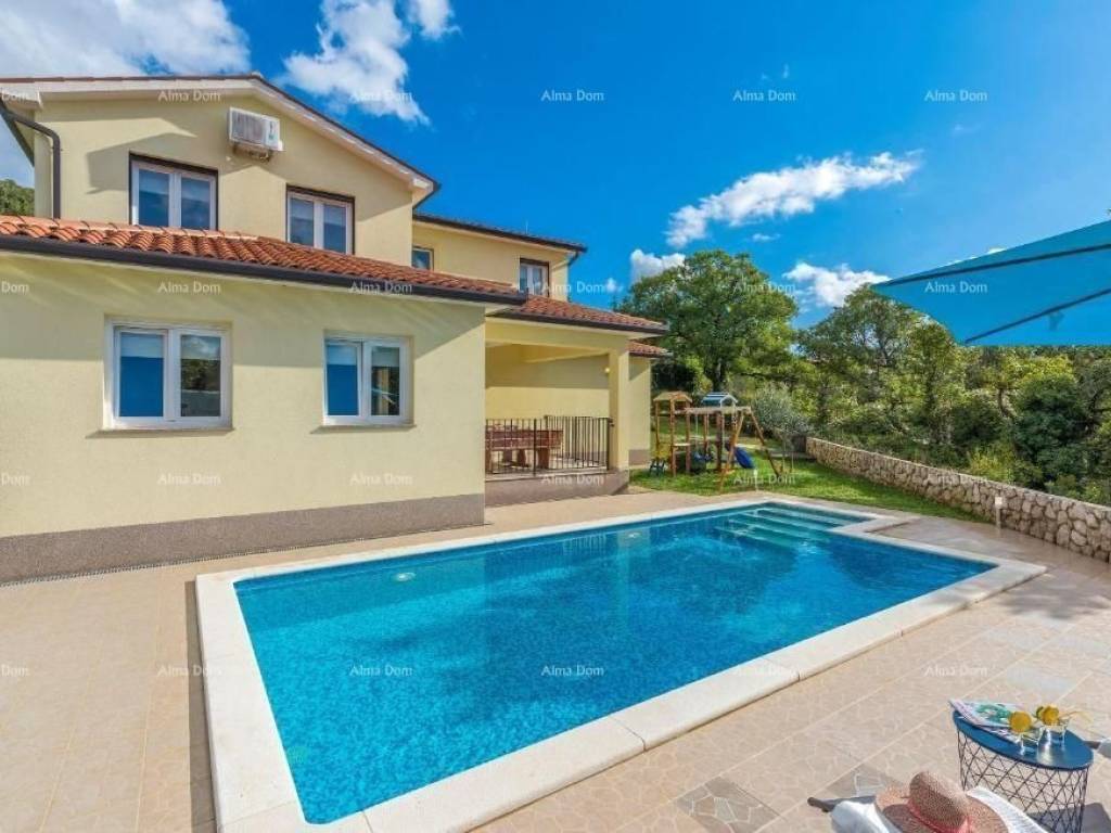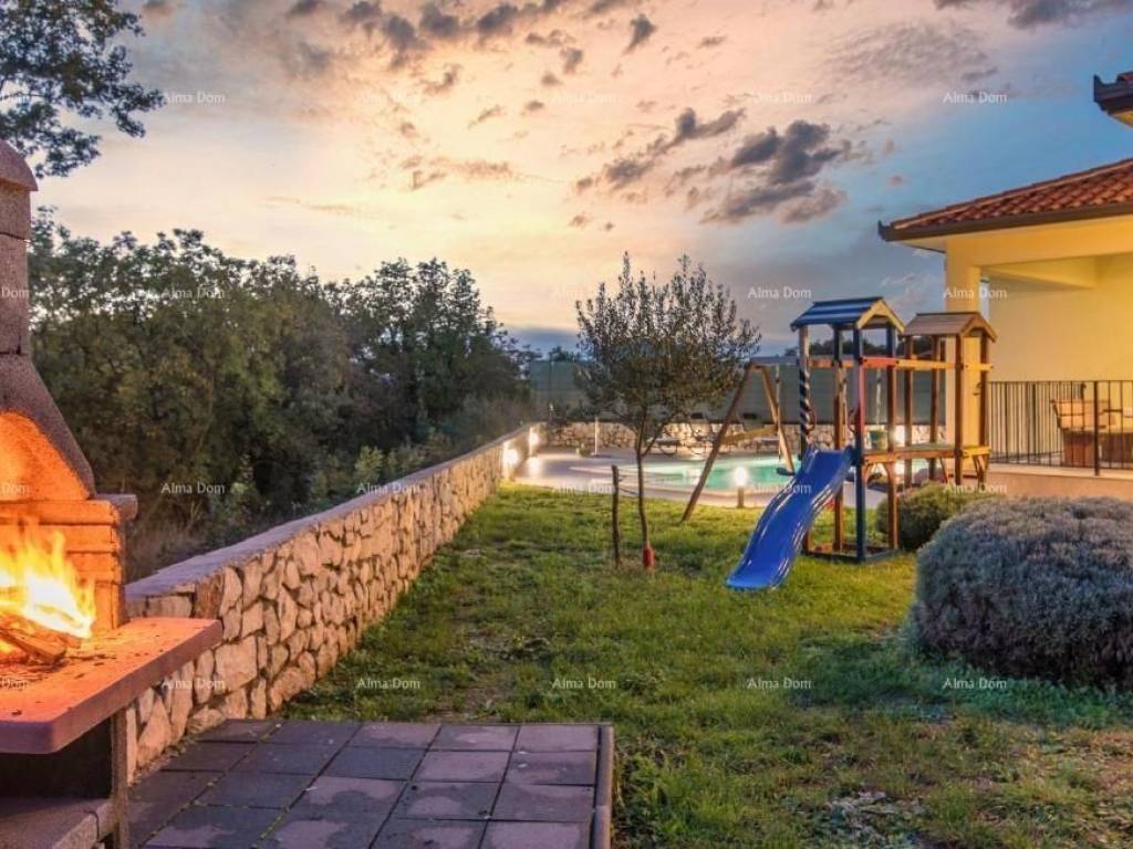 A charming holiday home is for sale in a quiet village. Basic information:House area: 121 m²Plot: 1,122 m² (fully fenced)The house consists of: ground floor + first floor.Ground floor:1 additional bedroom1 bathroomFully equipped kitchenDining roomLiving room with access to a covered terrace.First floor consists of:2 bedrooms2 modern bathroomsLarge terrace overlooking the pool and greenery.Exterior:Landscaped garden with children"s playground.Large swimming pool with sunbathing area.Covered terrace ideal for outdoor living.Ideal for family vacations, tourist rentals (excellent investment potential), living in a quiet environment.Location: 8.5 km from Labin, 4 km from the sea.For more information:Azra+385 91 611 5706+385 98 420 885azra@almadominvest.com