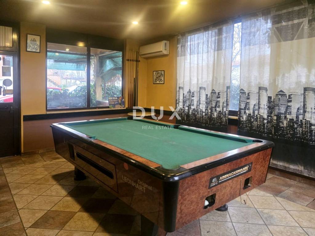 Komforan poslovni prostor neto površine 65 m sastoji se od potpuno opremljene prostorije ugostiteljskom opremom, uređajima i namještajem, prostorije s biljarom, dva sanitarna čvora i spremišta te dvije terase (jedna natkrivena terasa i jedna nenatkrivena terasa) ukupne površine 40 m.